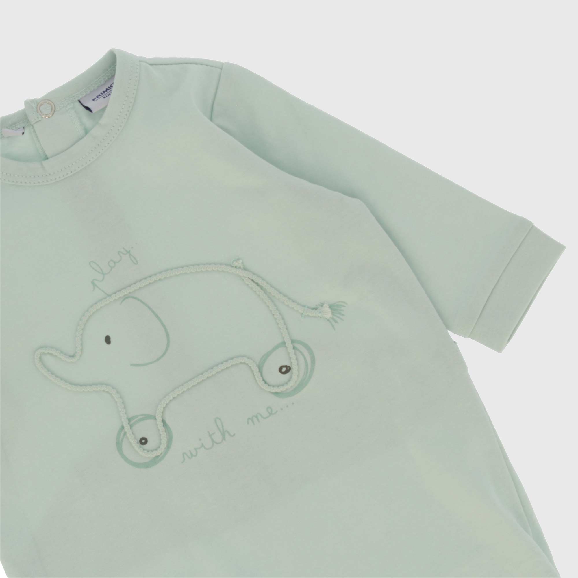 Комбинезон из джерси с круглым вырезом и длинными рукавами. Застежка на пуговицы сзади. Вышивка и принт спереди.