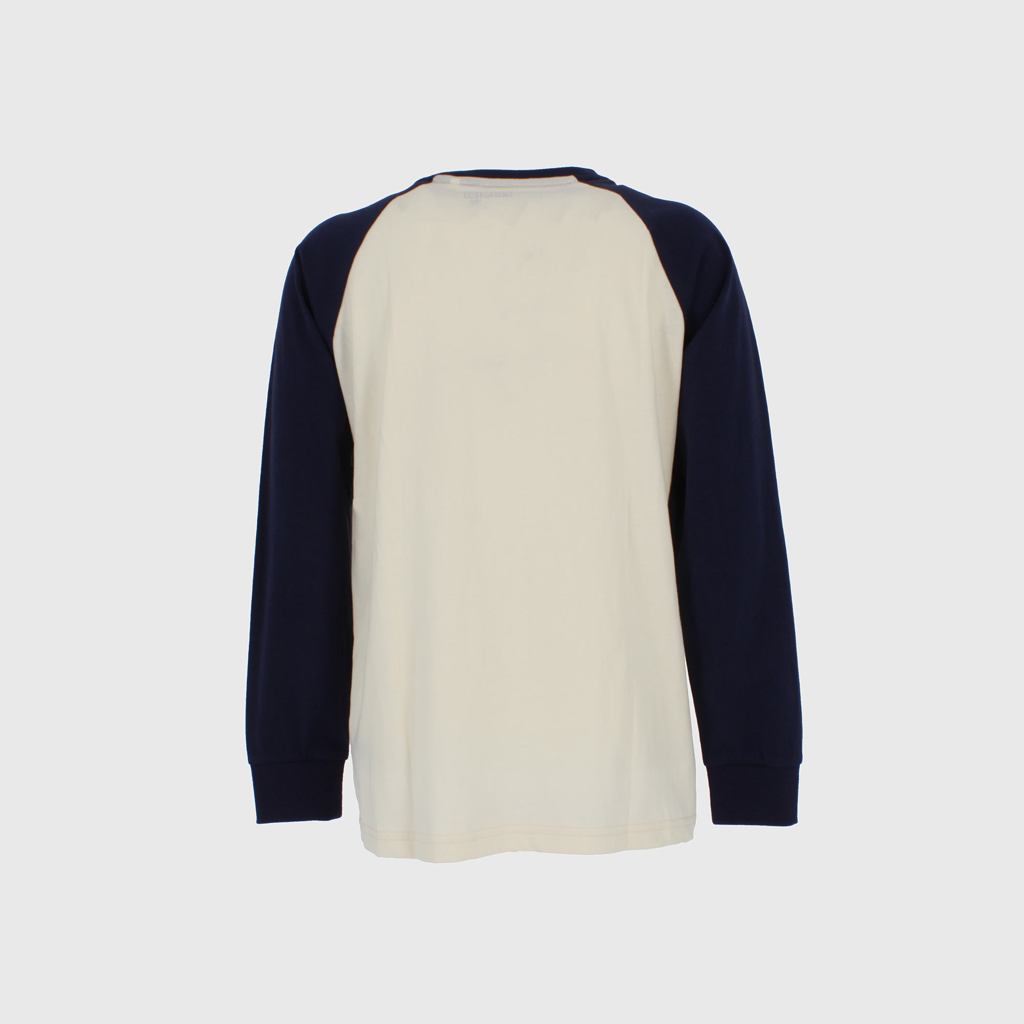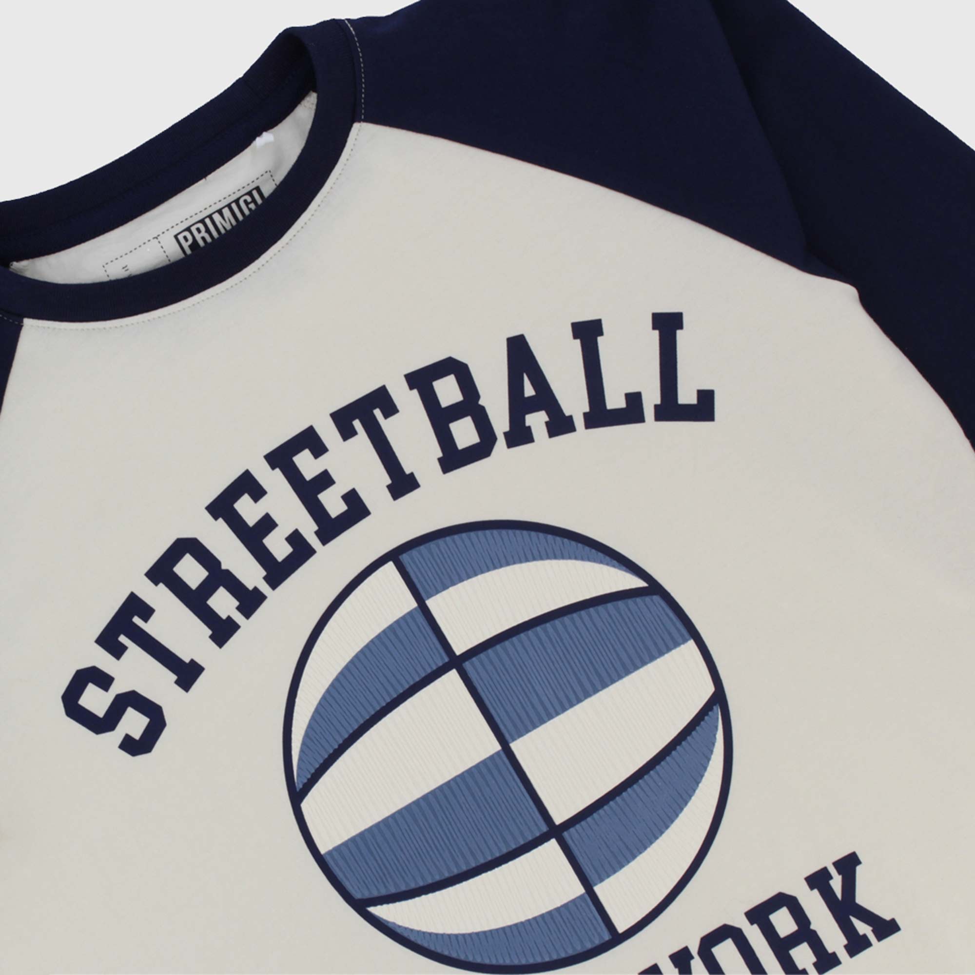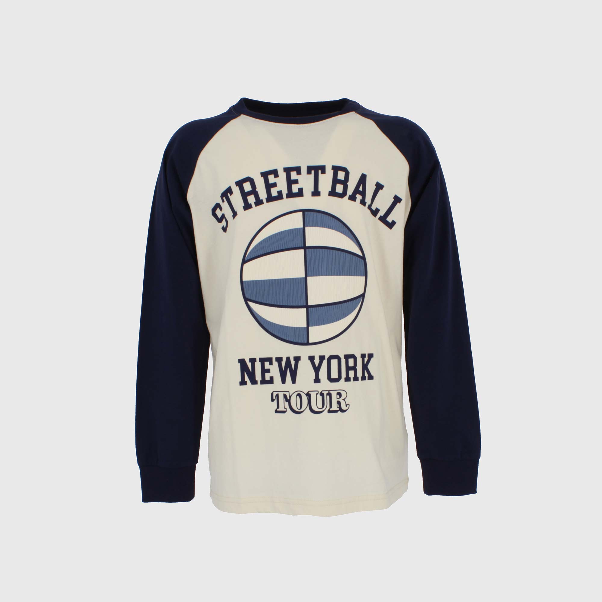 Футболка оверсайз из джерси, круглый вырез, длинные рукава. Принт с рельефными деталями спереди. Ребристые манжеты.
