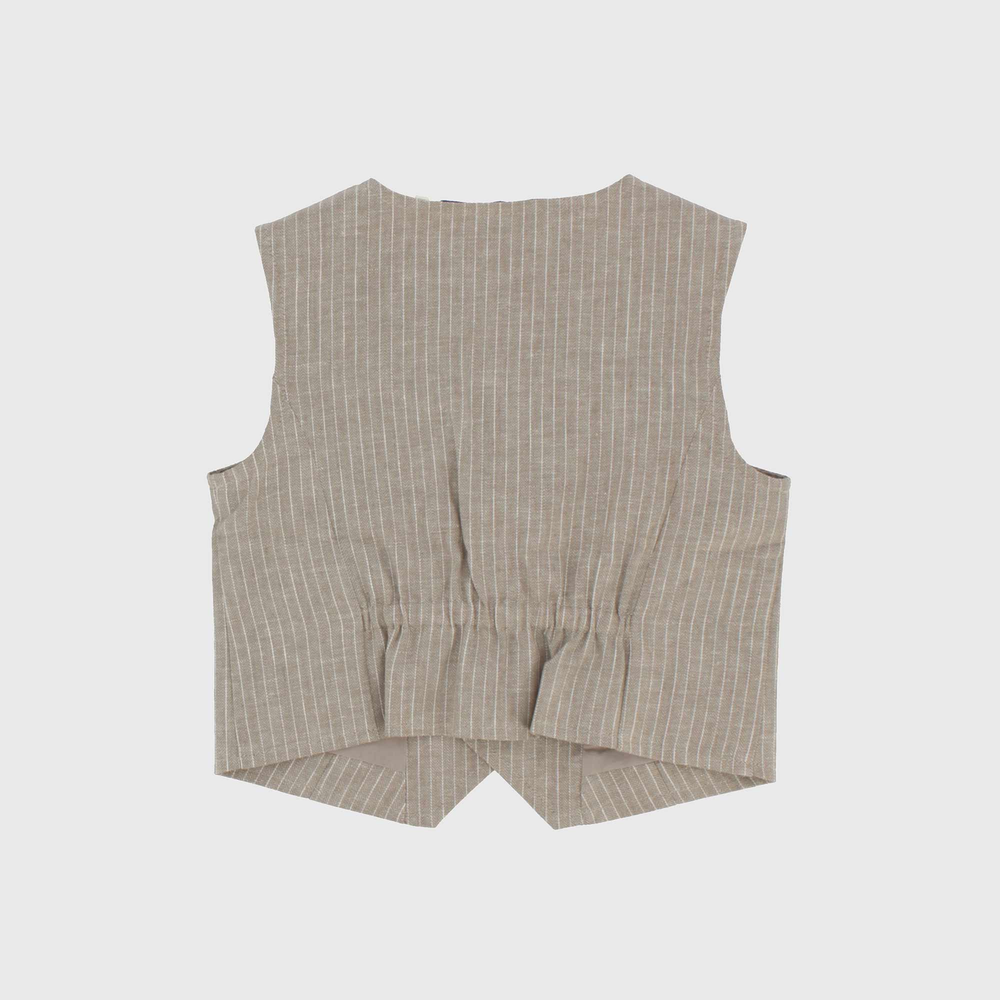 Жилет из льняного хлопка с окрашенными в пряжу полосками и пуговицами спереди.