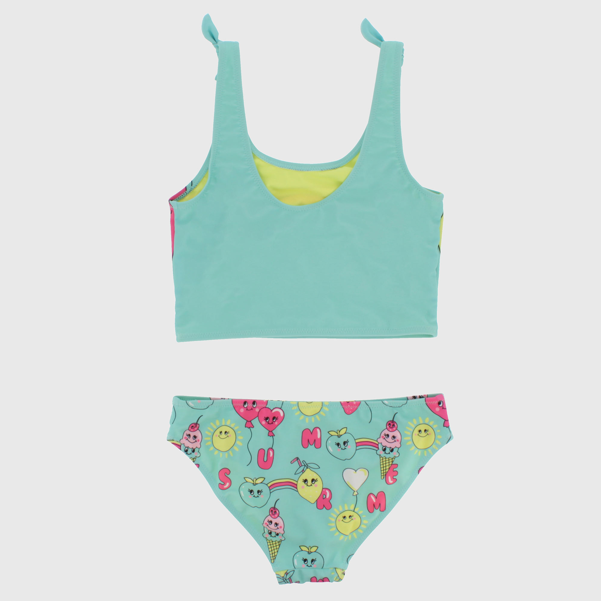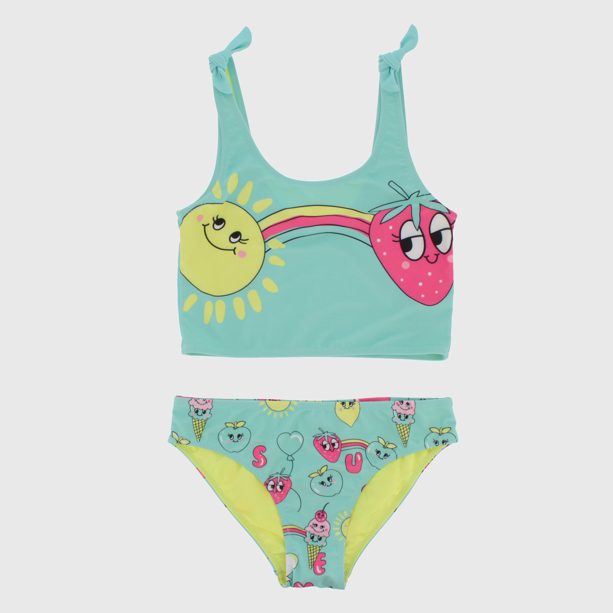 Бикини с принтом и сочетающимися верхом и низом. Топ на бретелях с бантиками. Трусики с эластичной талией.