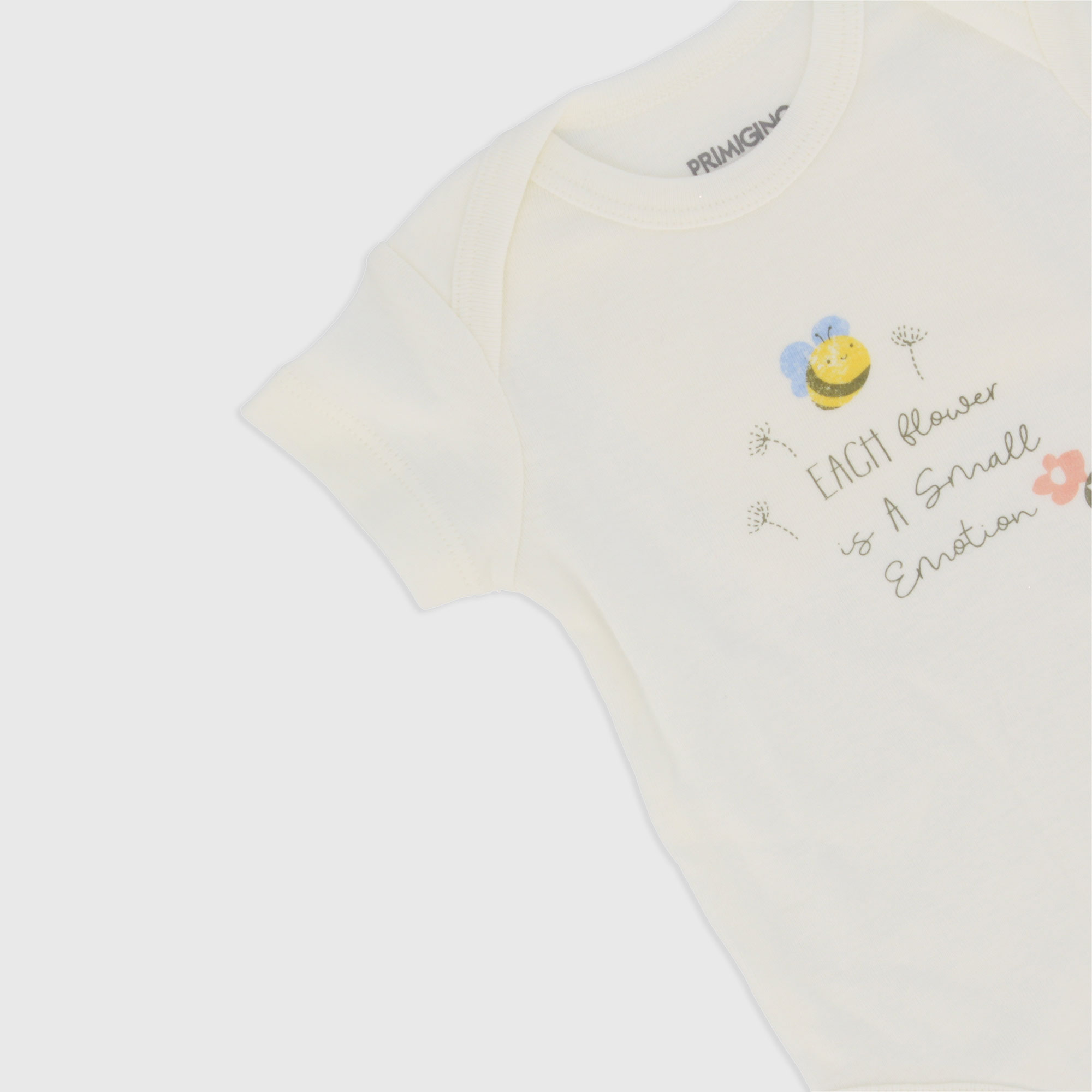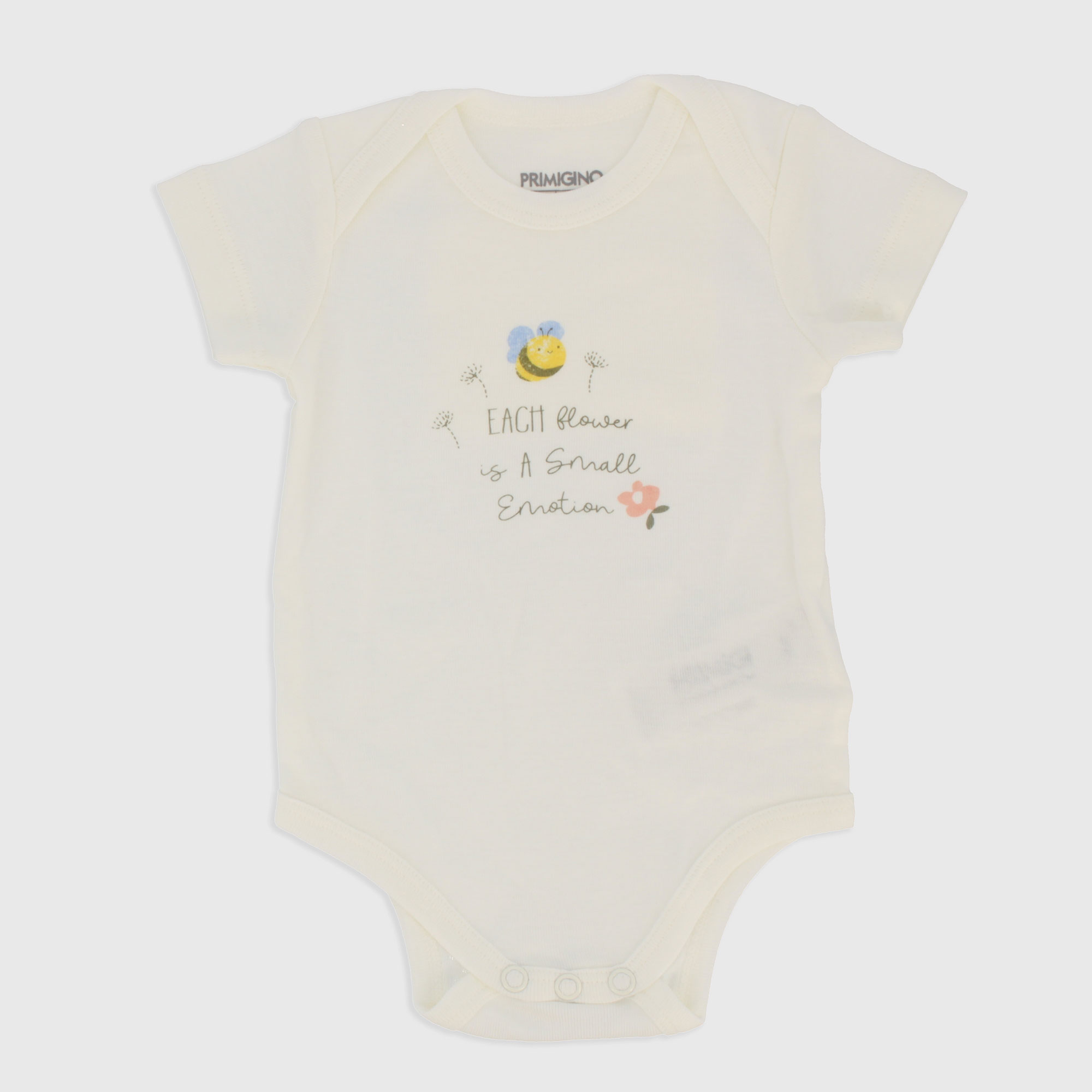 Боди в рубчик с круглым вырезом и короткими рукавами. Застежка на кнопки внизу. Принт спереди.