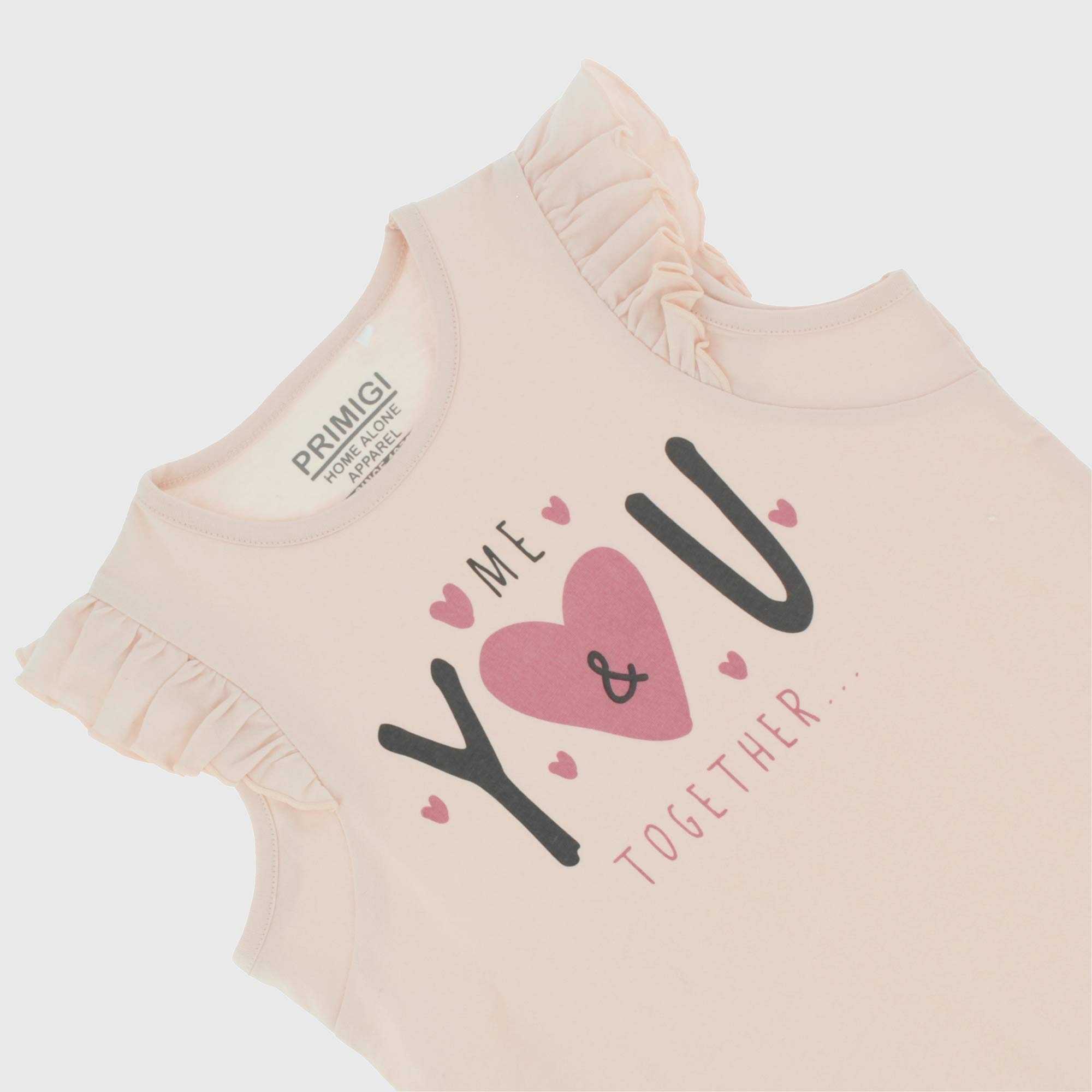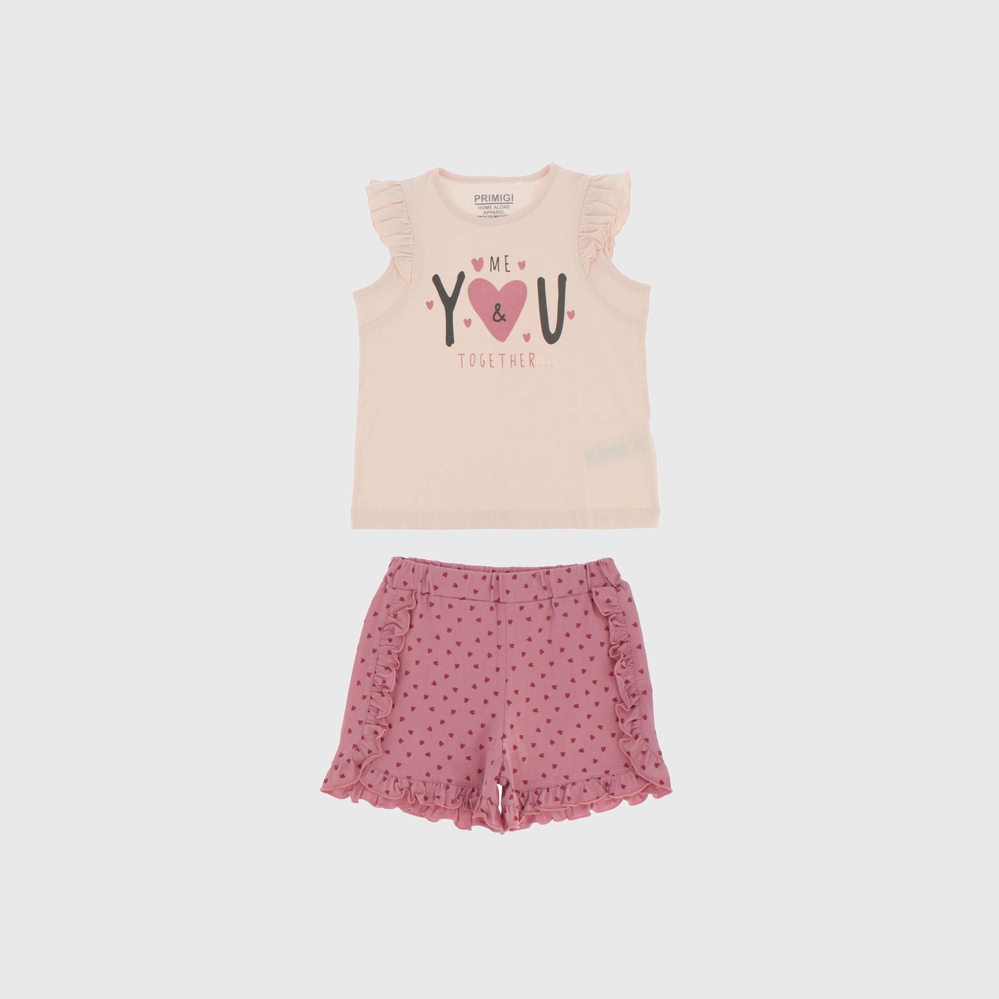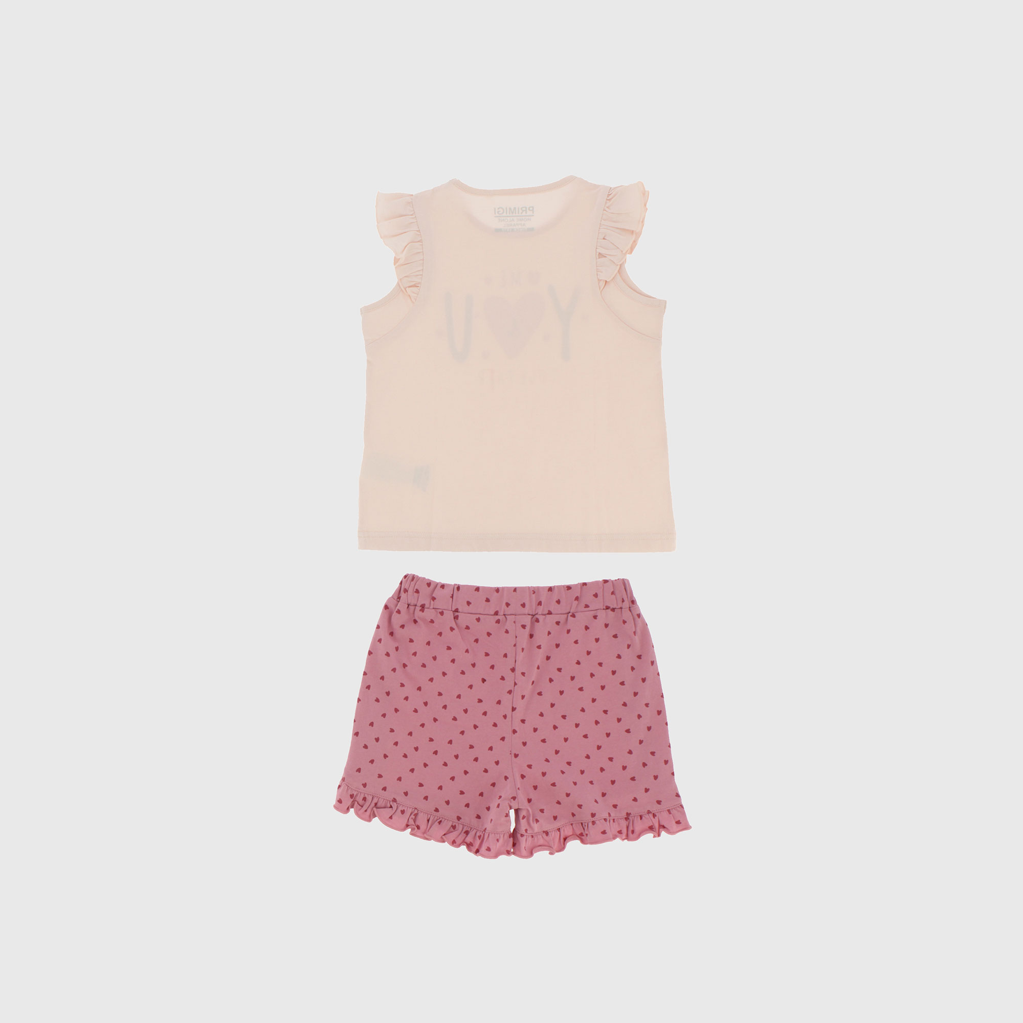 Пижамный комплект из джерси. Майка с круглым вырезом и небольшими рюшами на плечах. Принт спереди. Шорты с эластичной талией. Принт в виде сердца по всей поверхности.