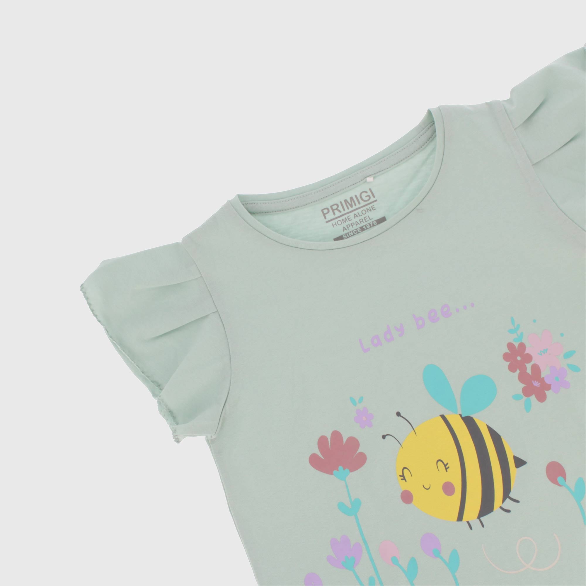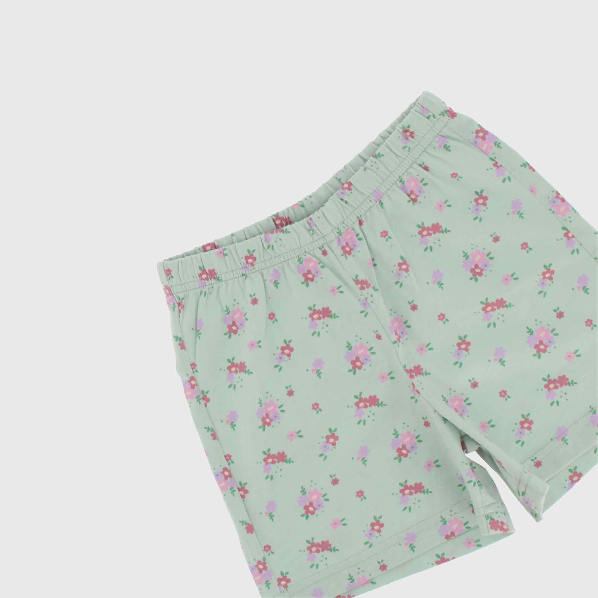 Пижамный комплект из джерси. Футболка с круглым вырезом и короткими рукавами-бабочками. Принт спереди. Шорты с эластичной талией. Цветочный принт по всей поверхности.