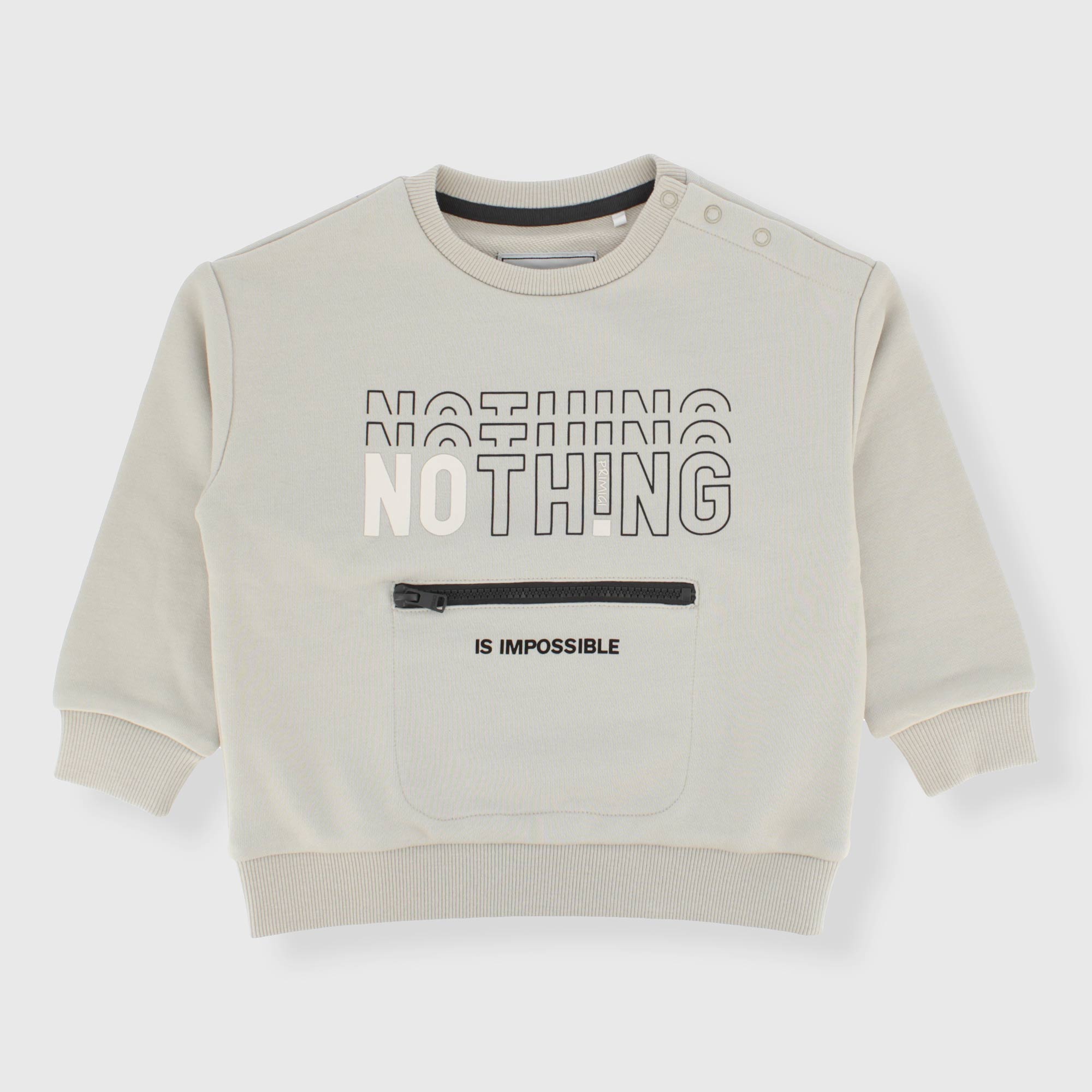 Толстовка с круглым вырезом и длинными рукавами. Застежка на кнопки на плече. Принт спереди и карман-кенгуру с контрастной молнией. Ребристый воротник, манжеты и низ.