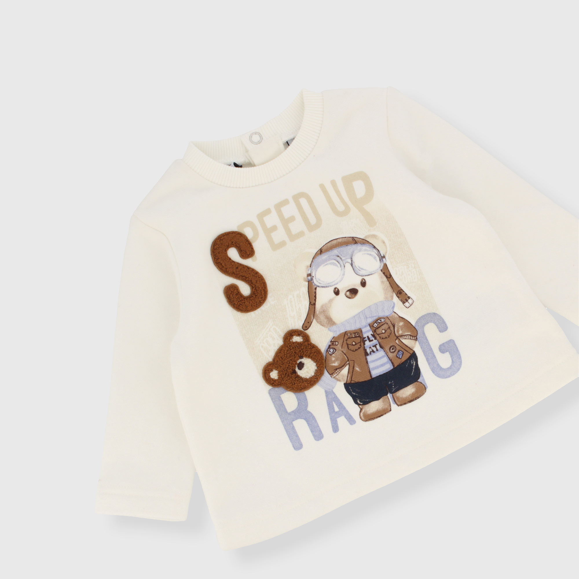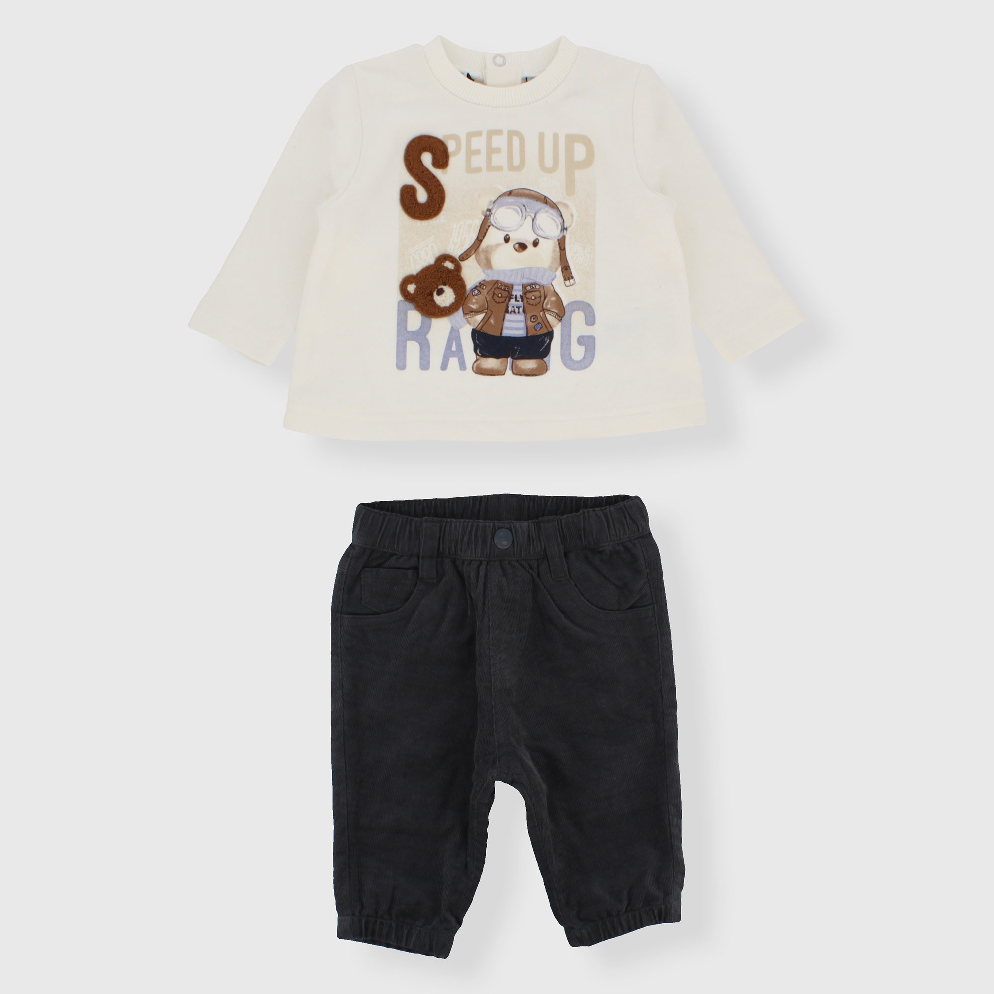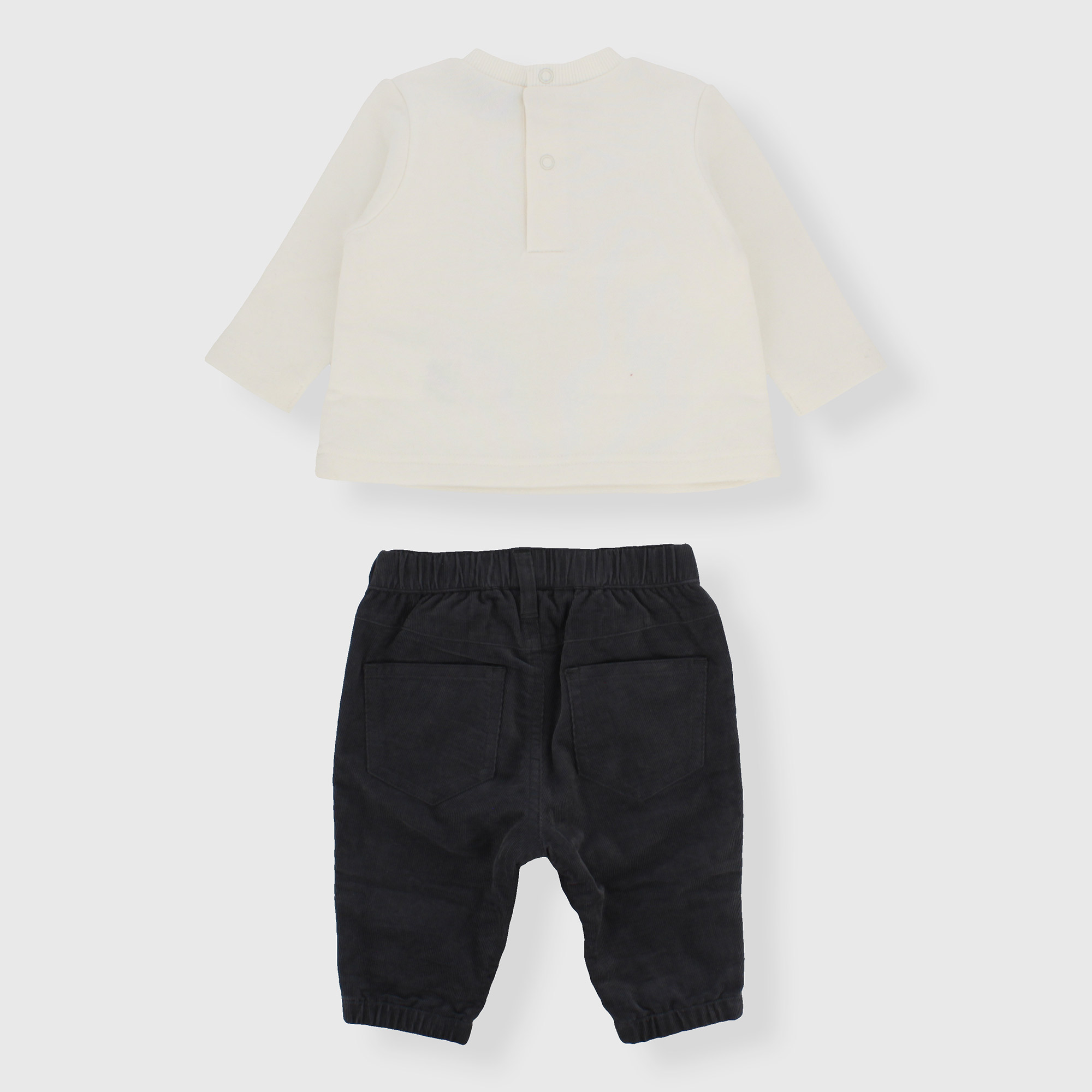 Набор состоящий из двух штук. Толстовка с круглым вырезом, длинные рукава. Застежка на кнопки сзади. Аппликации и принты спереди. Вельветовые брюки с эластичной резинкой на талии. Пять карманов и эластичный низ.
