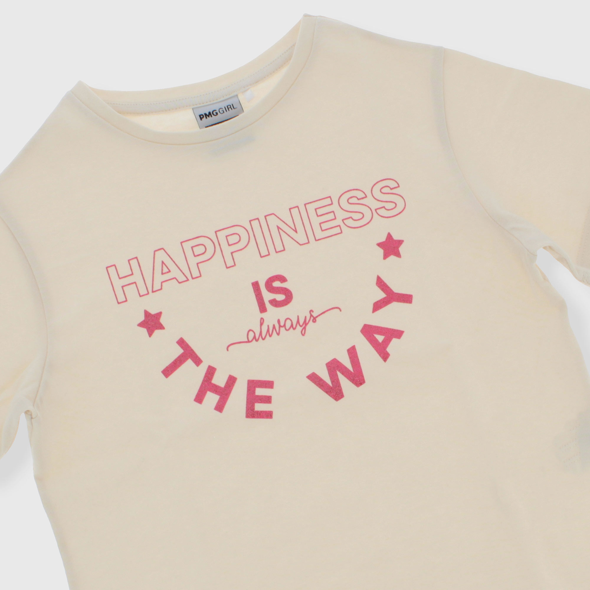 Футболка из джерси, круглый вырез, короткие рукава. Принт с блестящими деталями спереди.