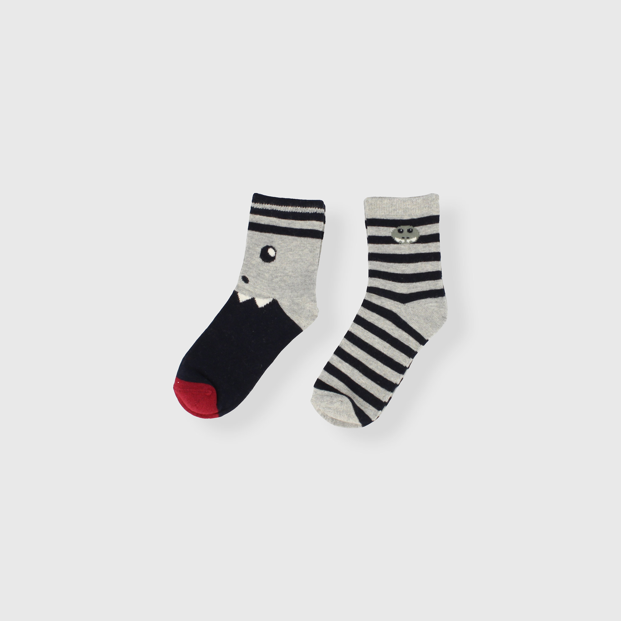 В наборе две пары носков: с изображением животного и с полосками. Эластичные края.
