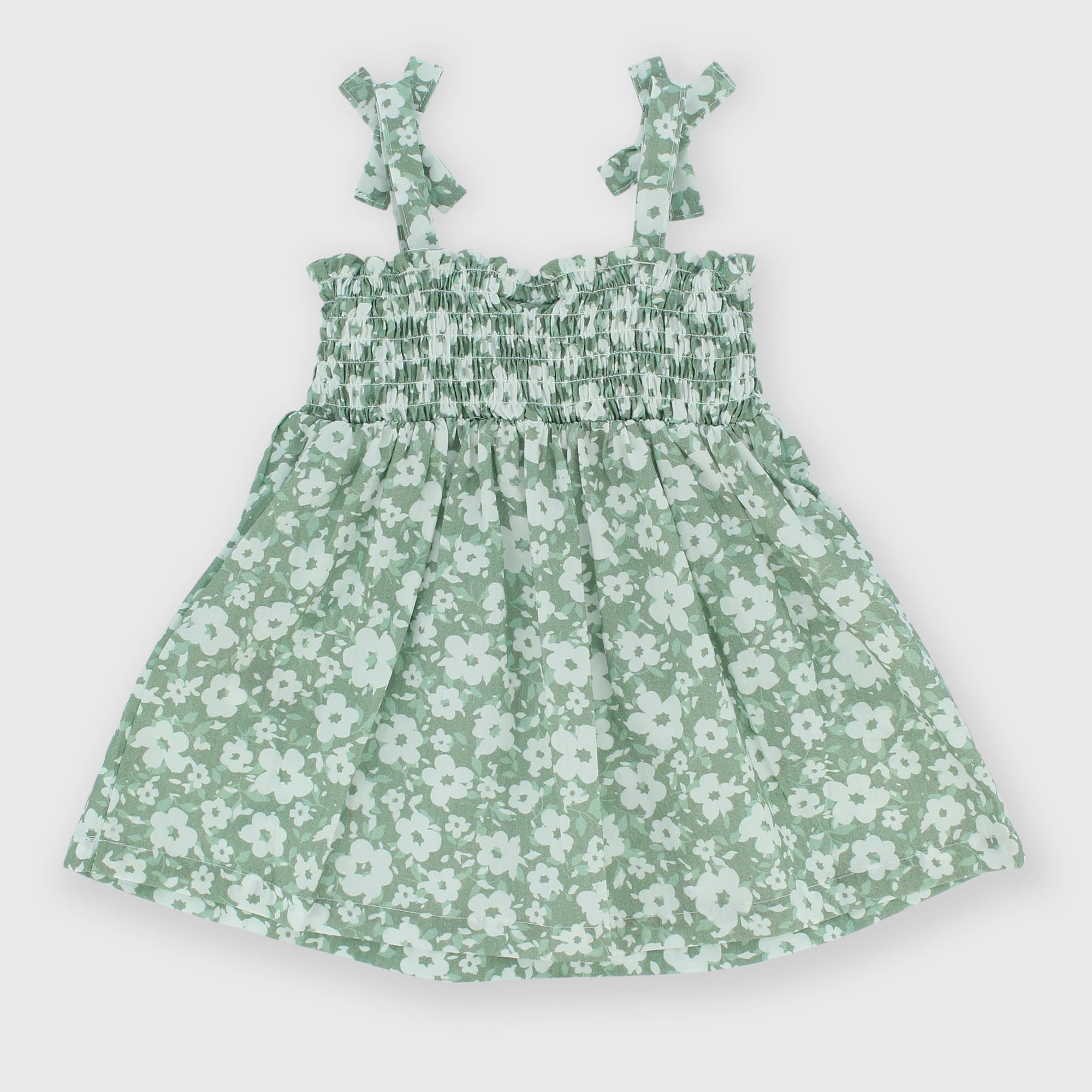 ПЛАТЬЕ ИЗ ХЛОПКА ДЛЯ НОВОРОЖДЕННОЙ, ЗЕЛЕНЫЙ