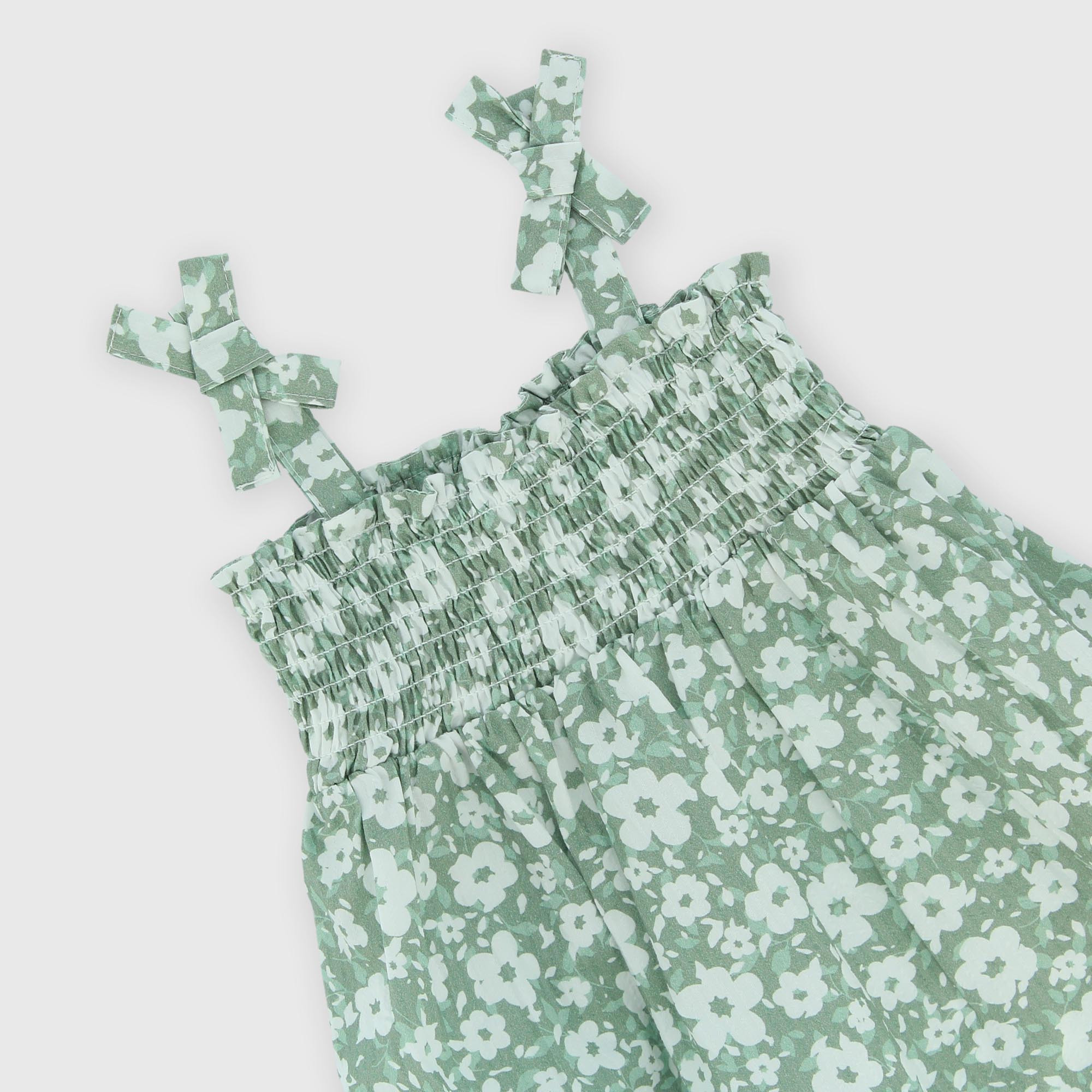 Хлопковое платье с принтом. Бретельки с накладными бантиками. Эластичная сборка на груди. Цветочный принт по всей поверхности. Трусики в тон с резинкой на талии.