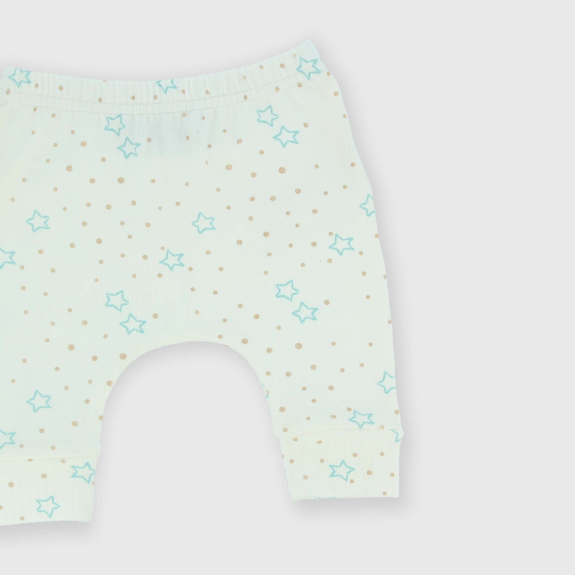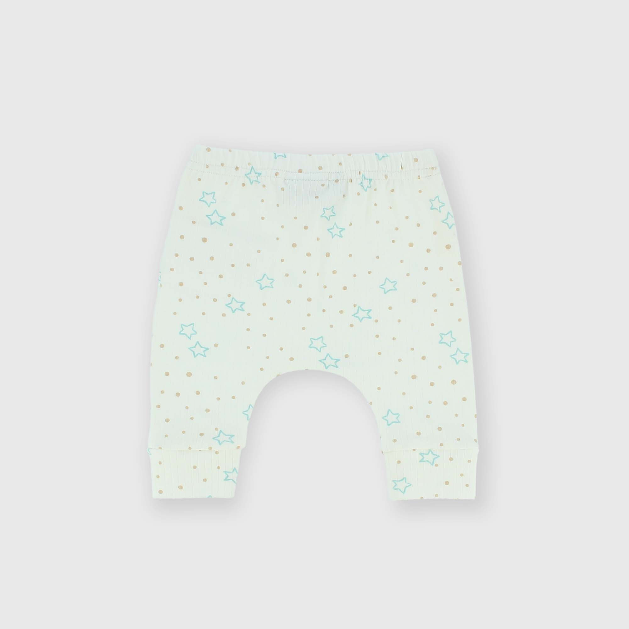 Брюки в рубчик с эластичной талией. Принт в виде звезд и горошка по всей поверхности.