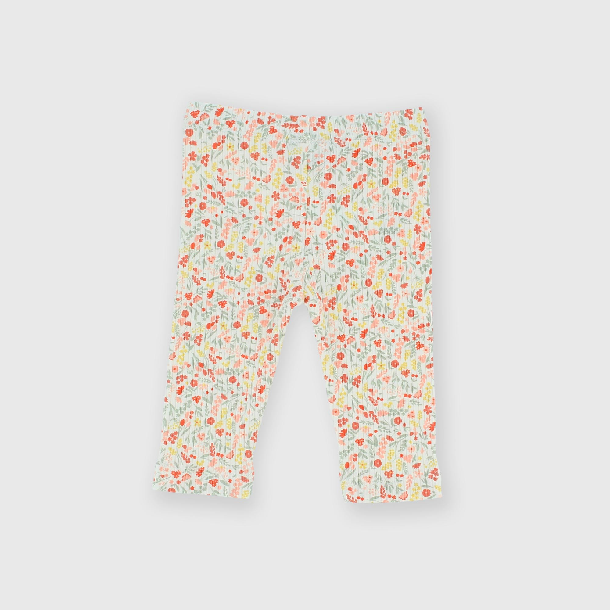 Леггинсы в рубчик с эластичной талией. Цветочный принт по всей поверхности