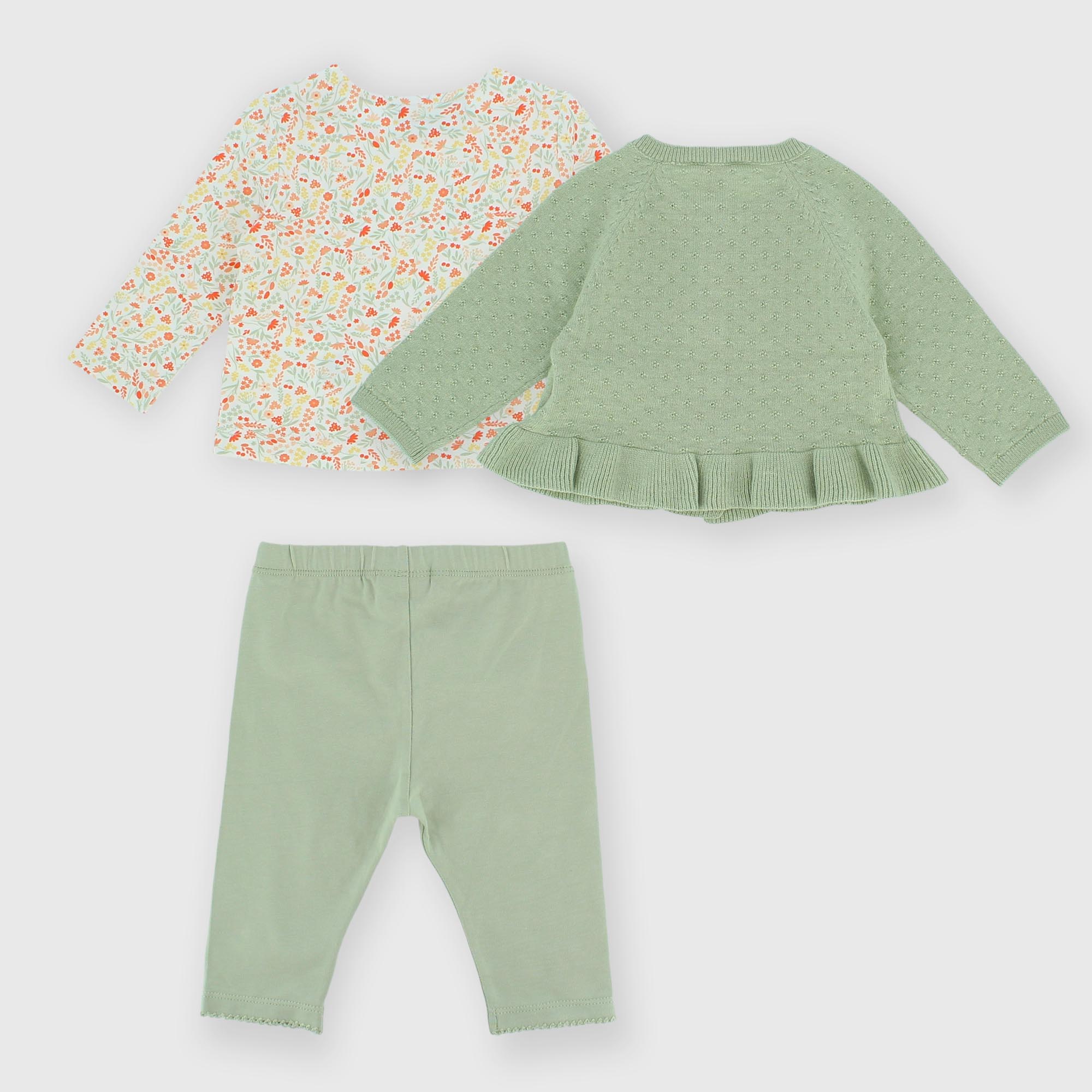КОМПЛЕКТ ИЗ ТРЕХ ЧАСТЕЙ ДЛЯ НОВОРОЖДЕННОЙ, ЗЕЛЕНЫЙ