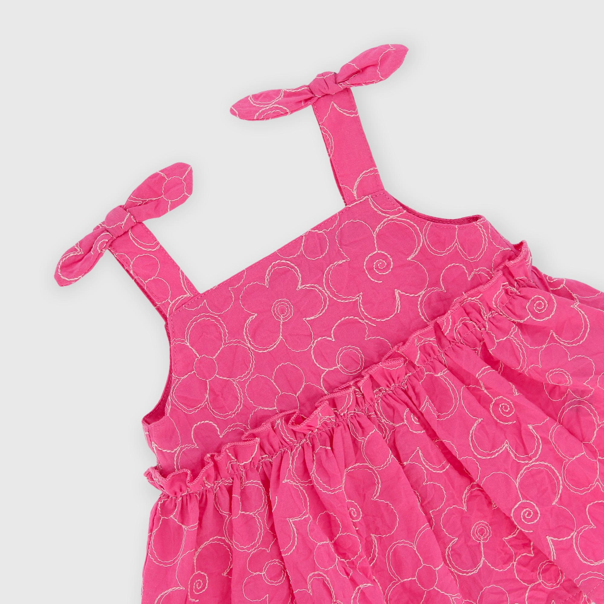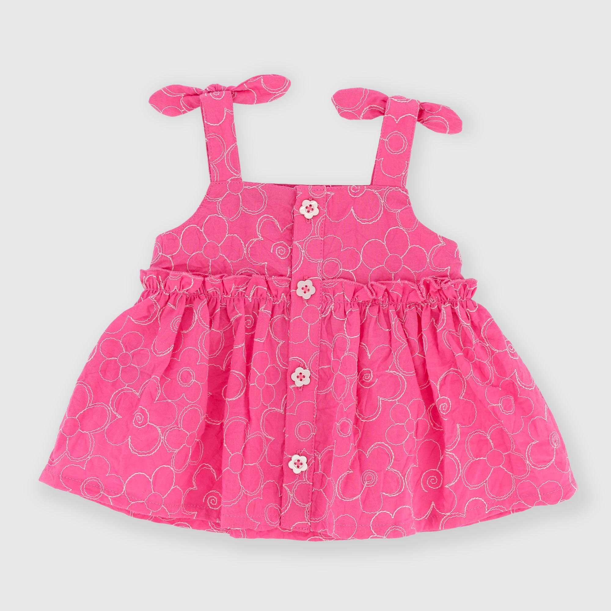 Набор состоящий из двух штук. Топ с цветочной вышивкой, бретелями и накладными бантиками. Застегивается спереди. Трусики в тон с резинкой на талии
