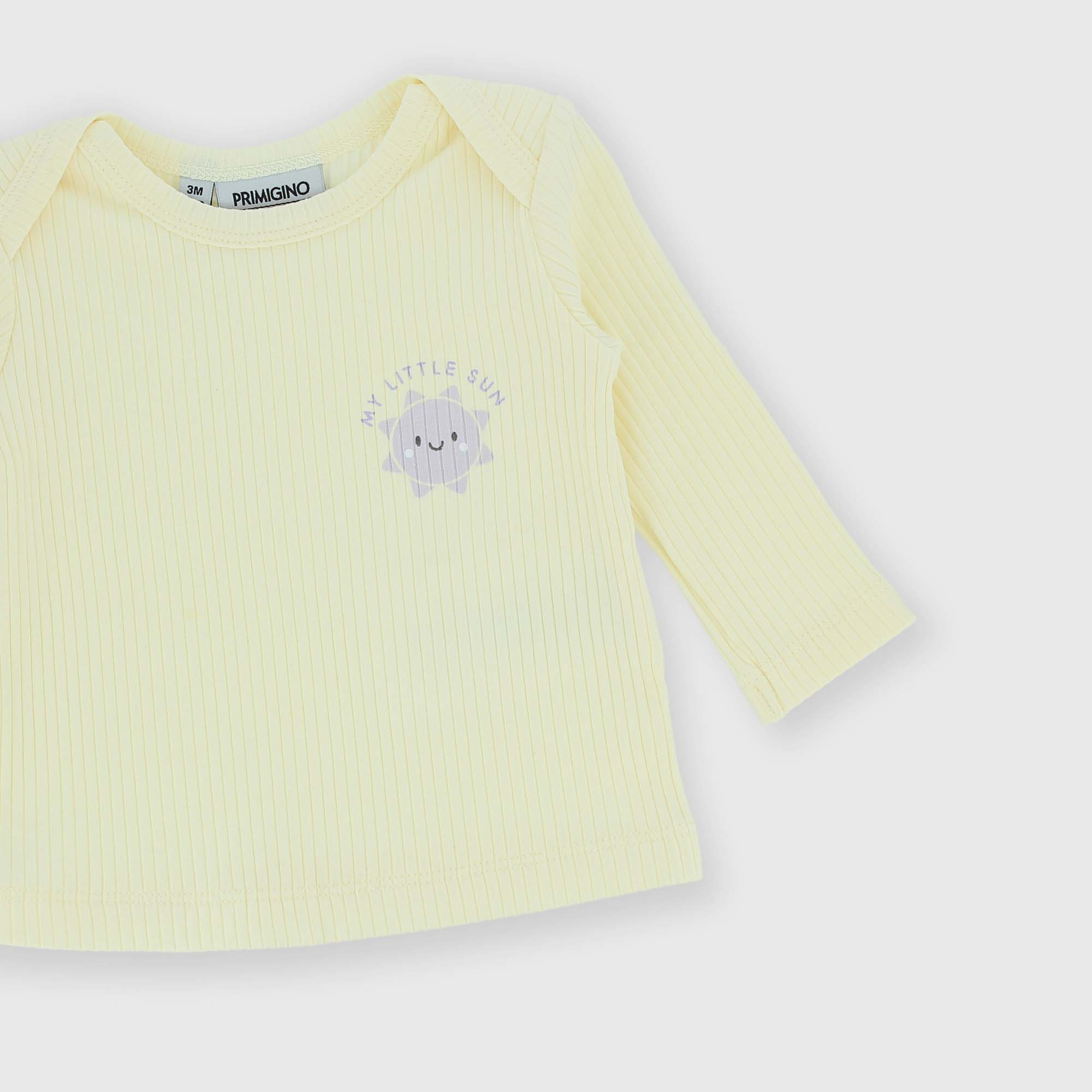 Футболка в рубчик, круглый вырез, длинные рукава. Солнцезащитный принт спереди.