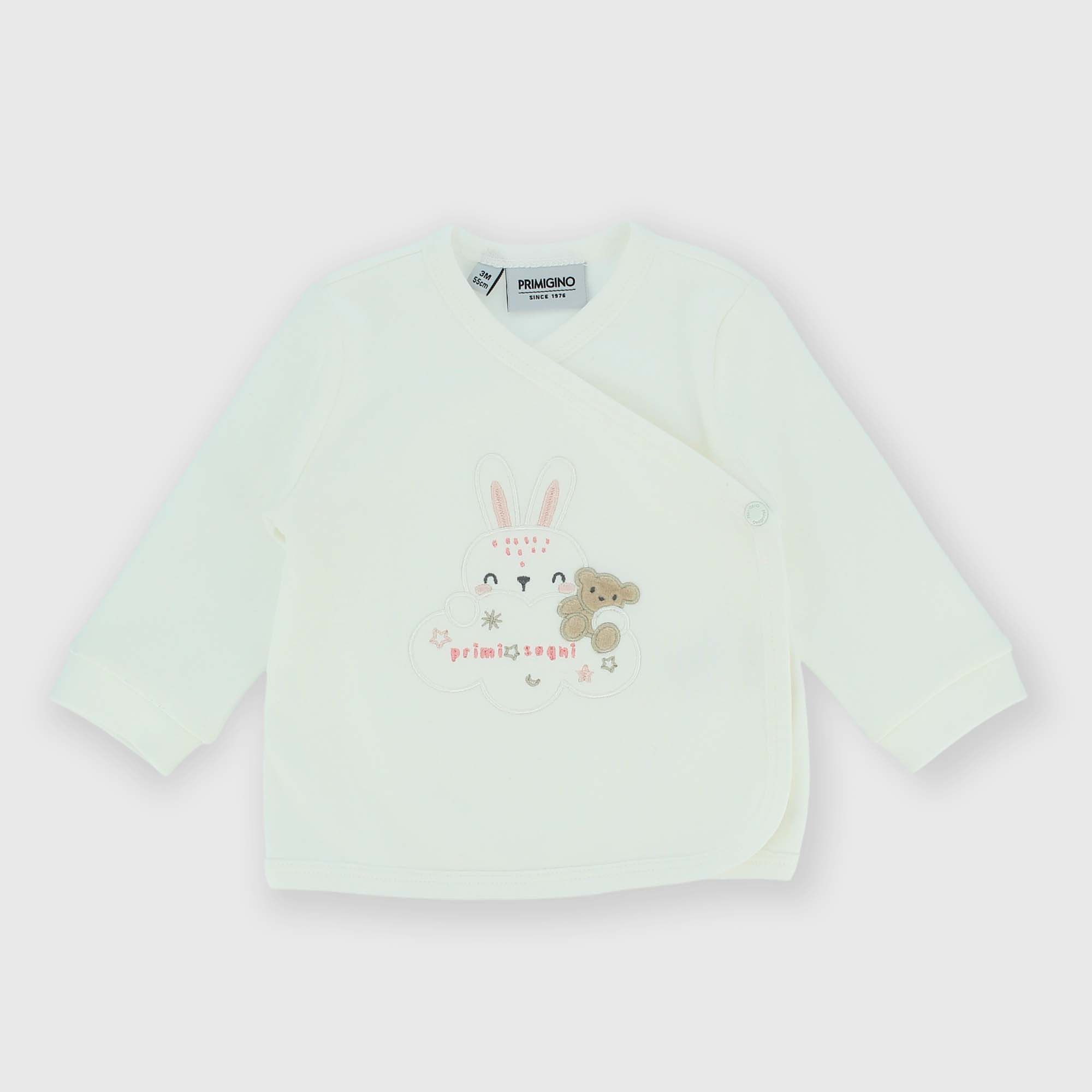 Накидка интерлок с длинными рукавами. Застегивание кимоно. Принт кролика спереди.