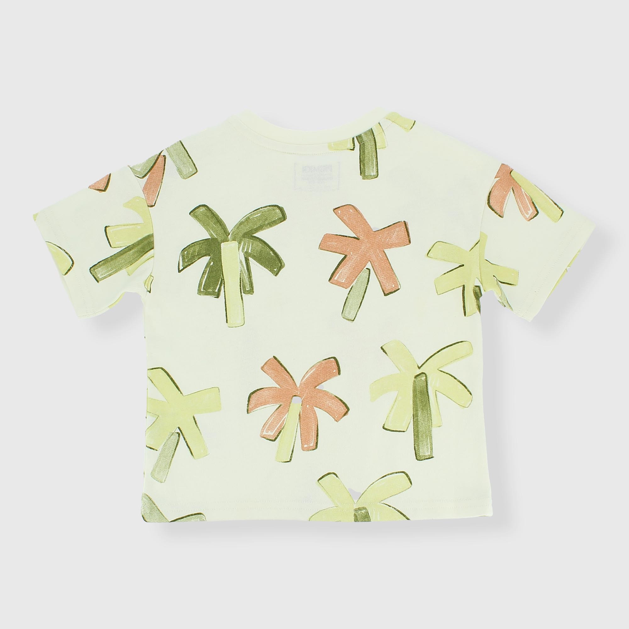 Футболка из плотного трикотажа, круглый вырез, короткие рукава. Застежка на кнопки на плече. Сплошной принт.