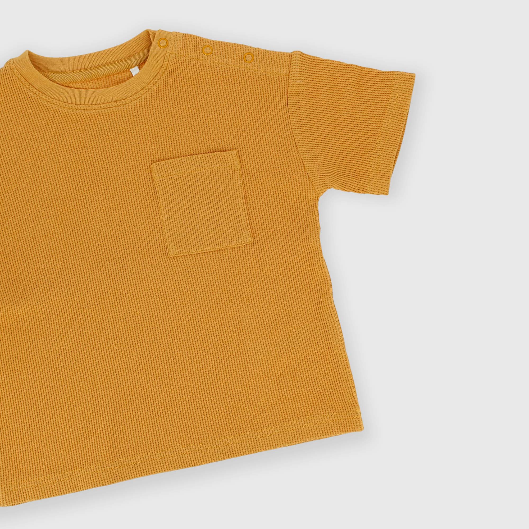 Футболка с короткими рукавами и круглым вырезом. Застежка на кнопки на плече. Изготовление с сотовым эффектом. Нагрудный карман.