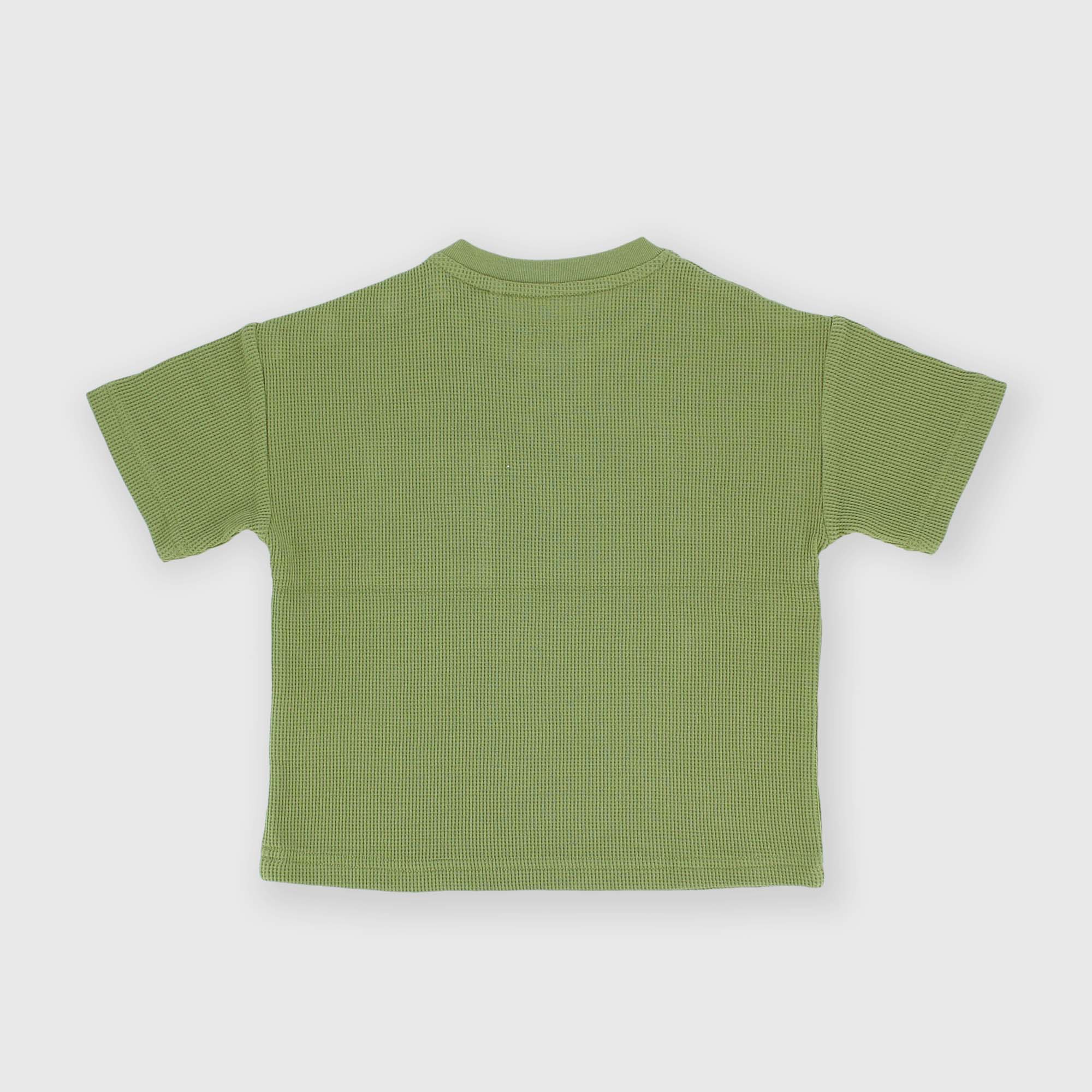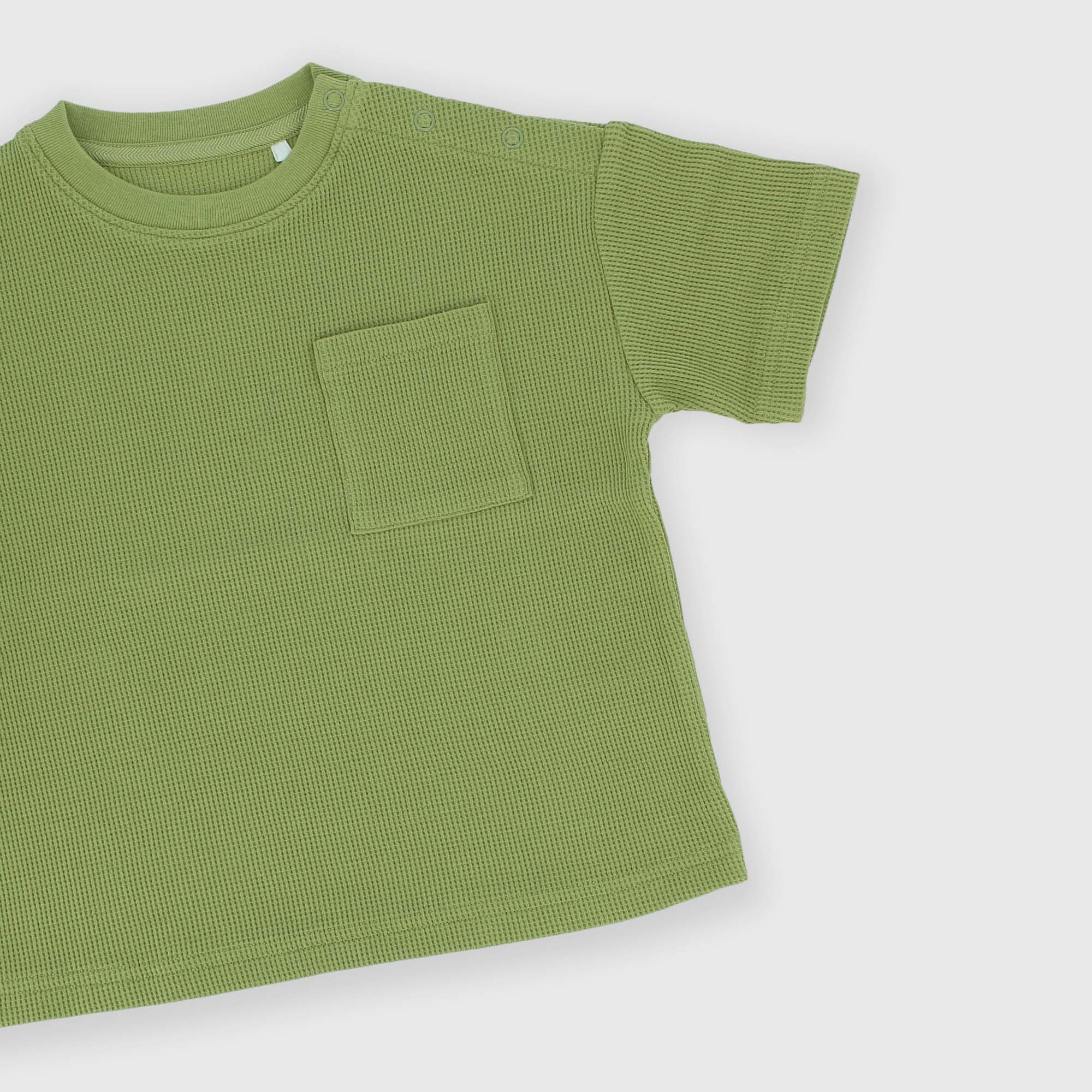 Футболка с короткими рукавами и круглым вырезом. Застежка на кнопки на плече. Изготовление с сотовым эффектом. Нагрудный карман.