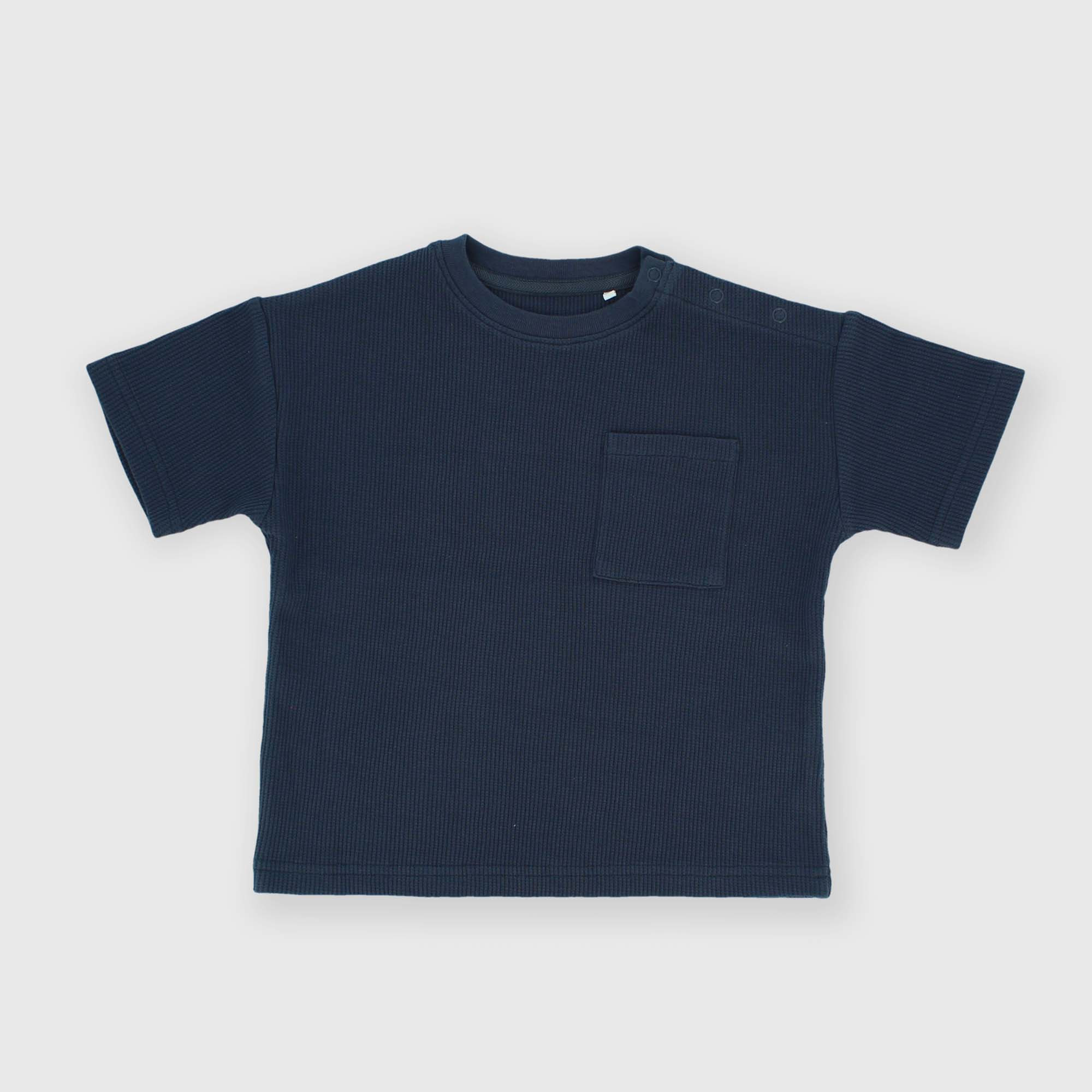 Футболка с короткими рукавами и круглым вырезом. Застежка на кнопки на плече. Изготовление с сотовым эффектом. Нагрудный карман.