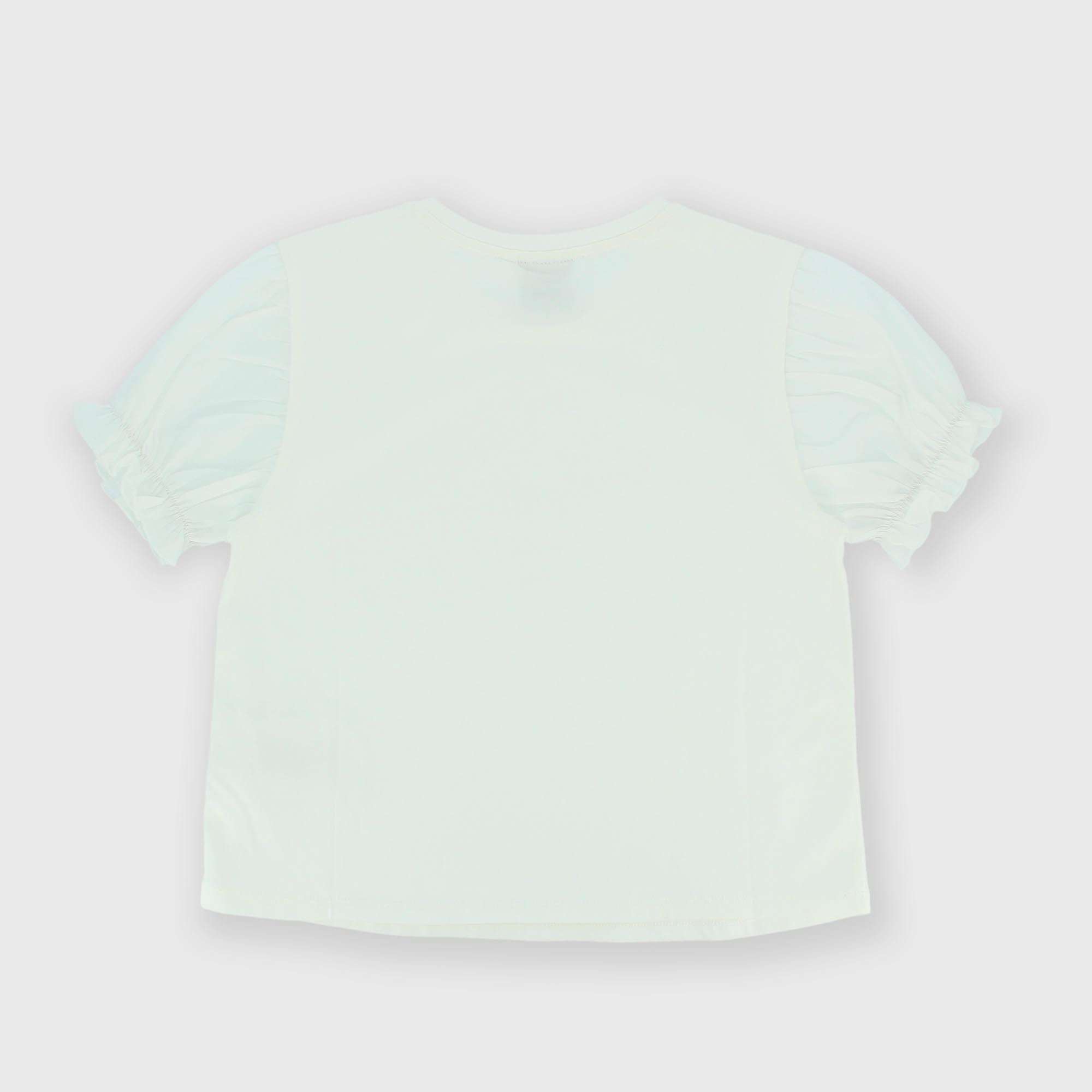 Футболка из эластичного джерси с круглым вырезом и короткими рукавами-фонариками.
