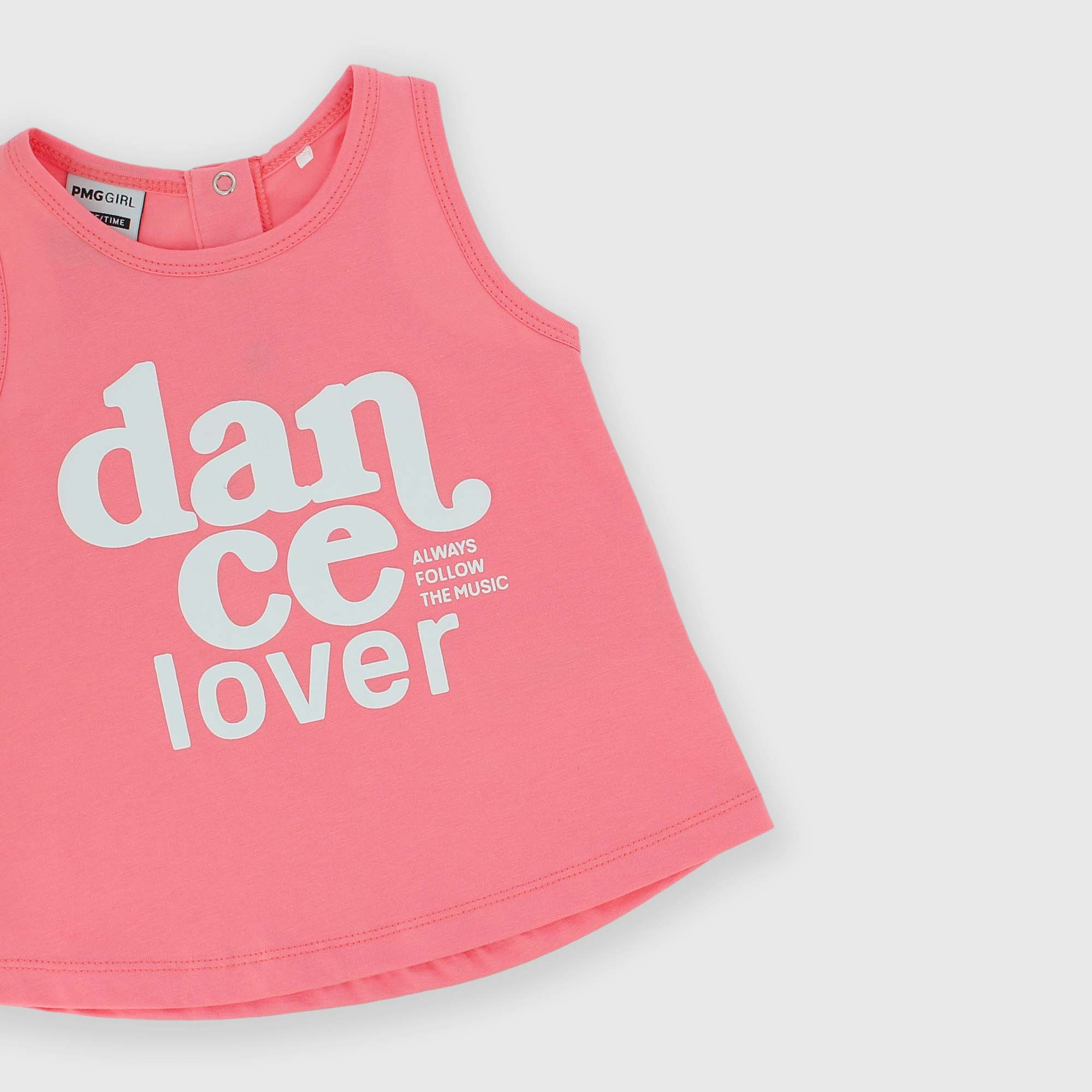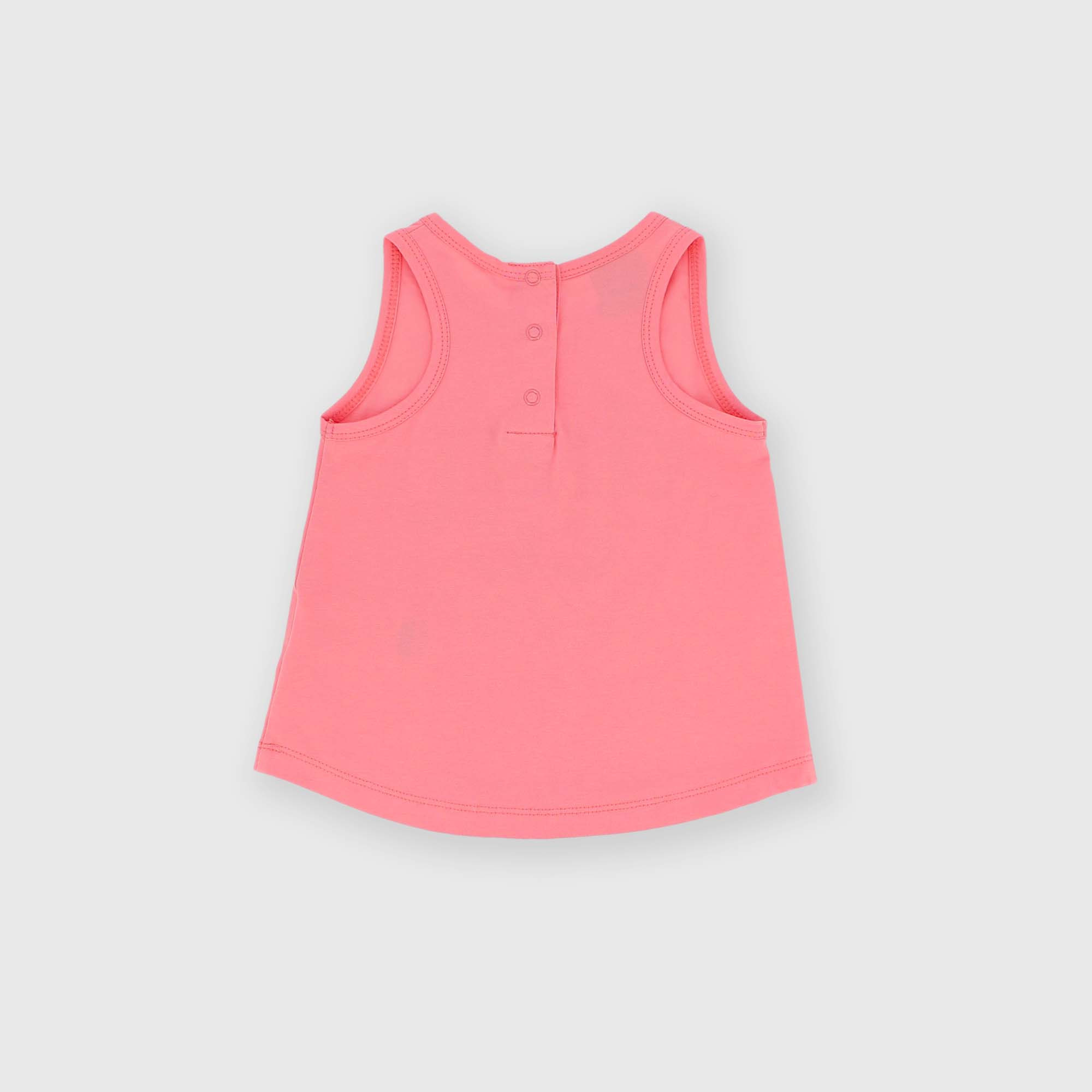 Майка из джерси, круглый вырез. Застежка на кнопки сзади. Принт с прорезиненной надписью спереди.