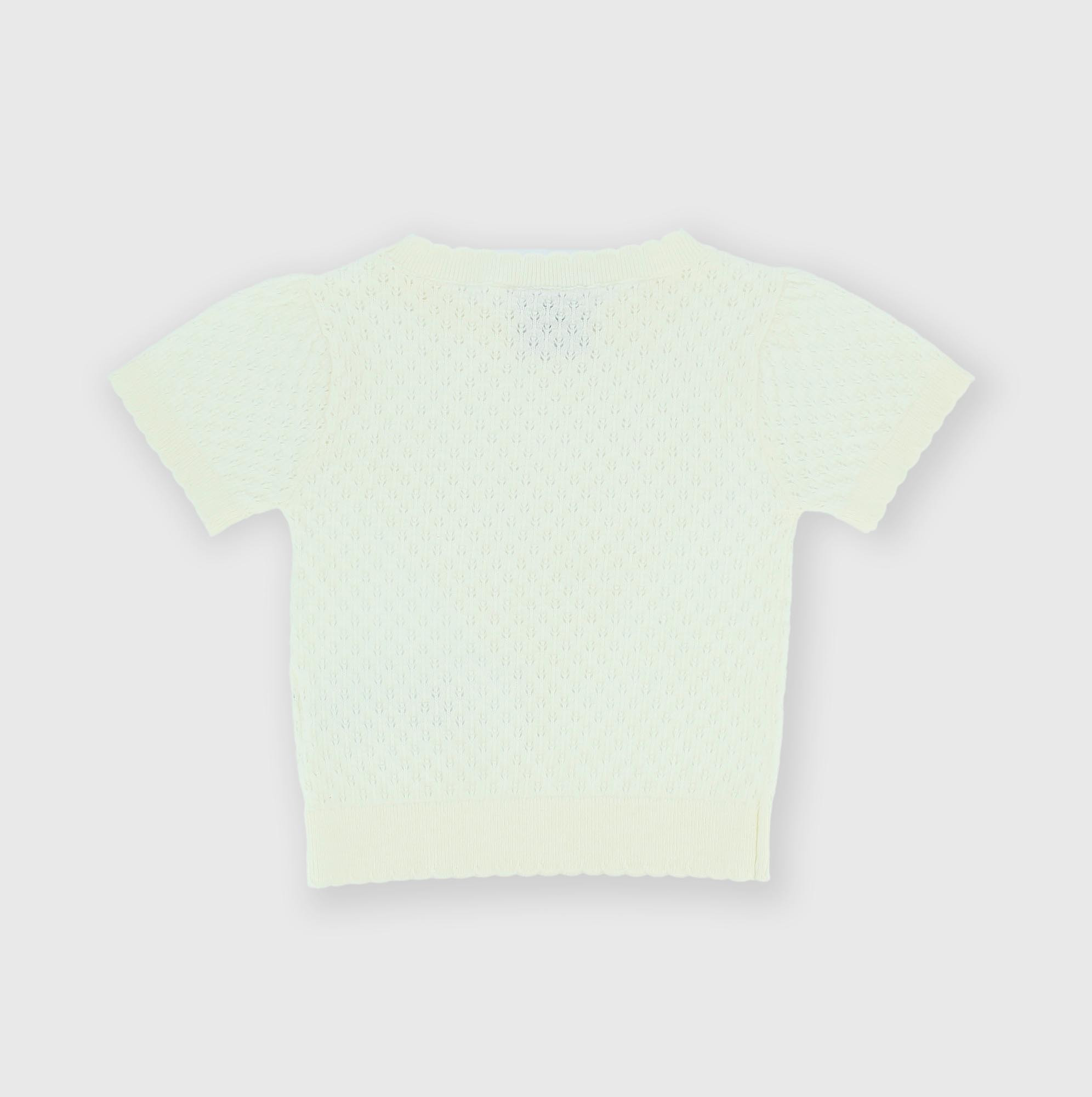 Свитер из мягкого хлопкового трикотажа, круглый вырез, короткие рукава. Ажурный эффект исполнения.