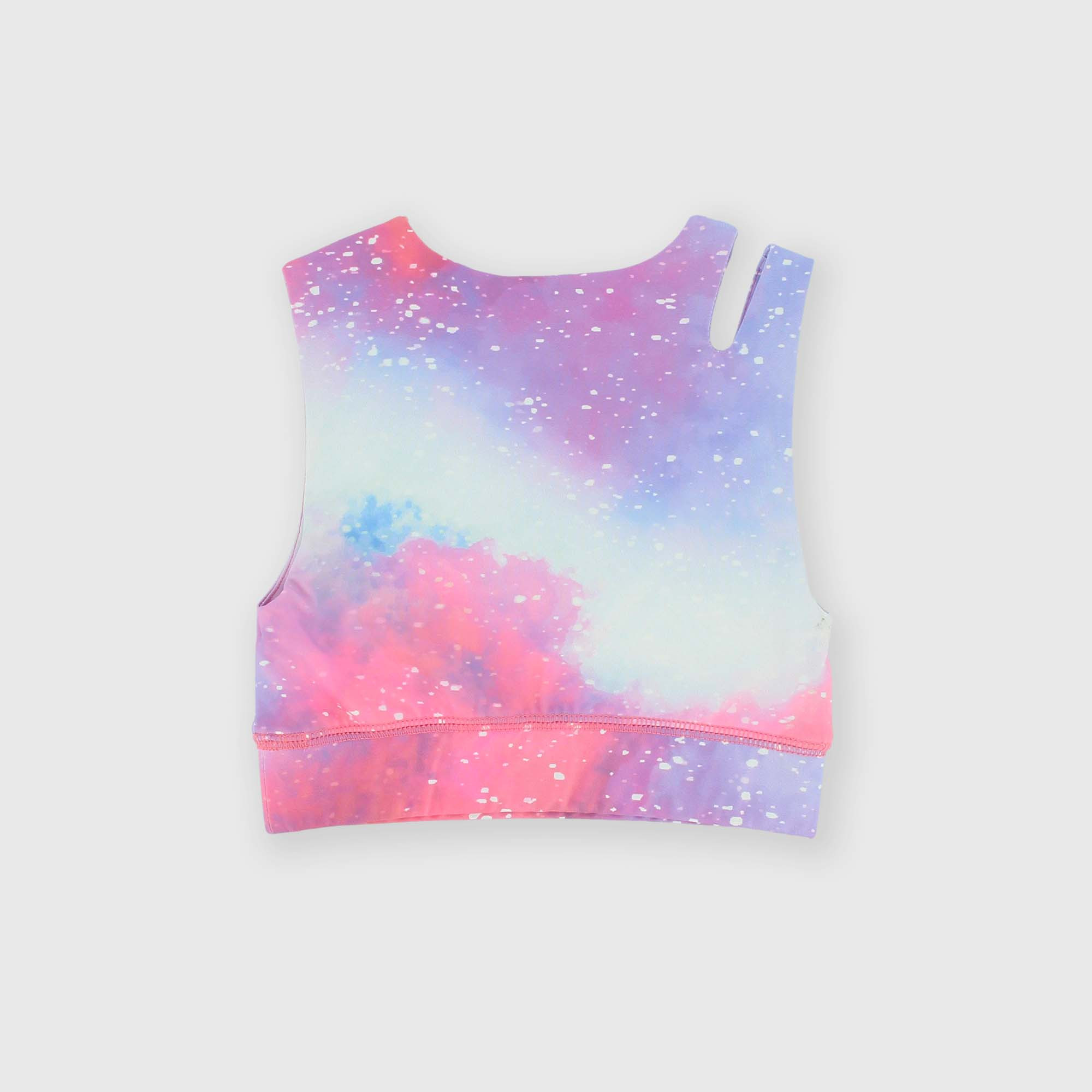 Топ из эластичной технической ткани, с круглым вырезом, без рукавов. Сплошной принт. Низ на резинке.
