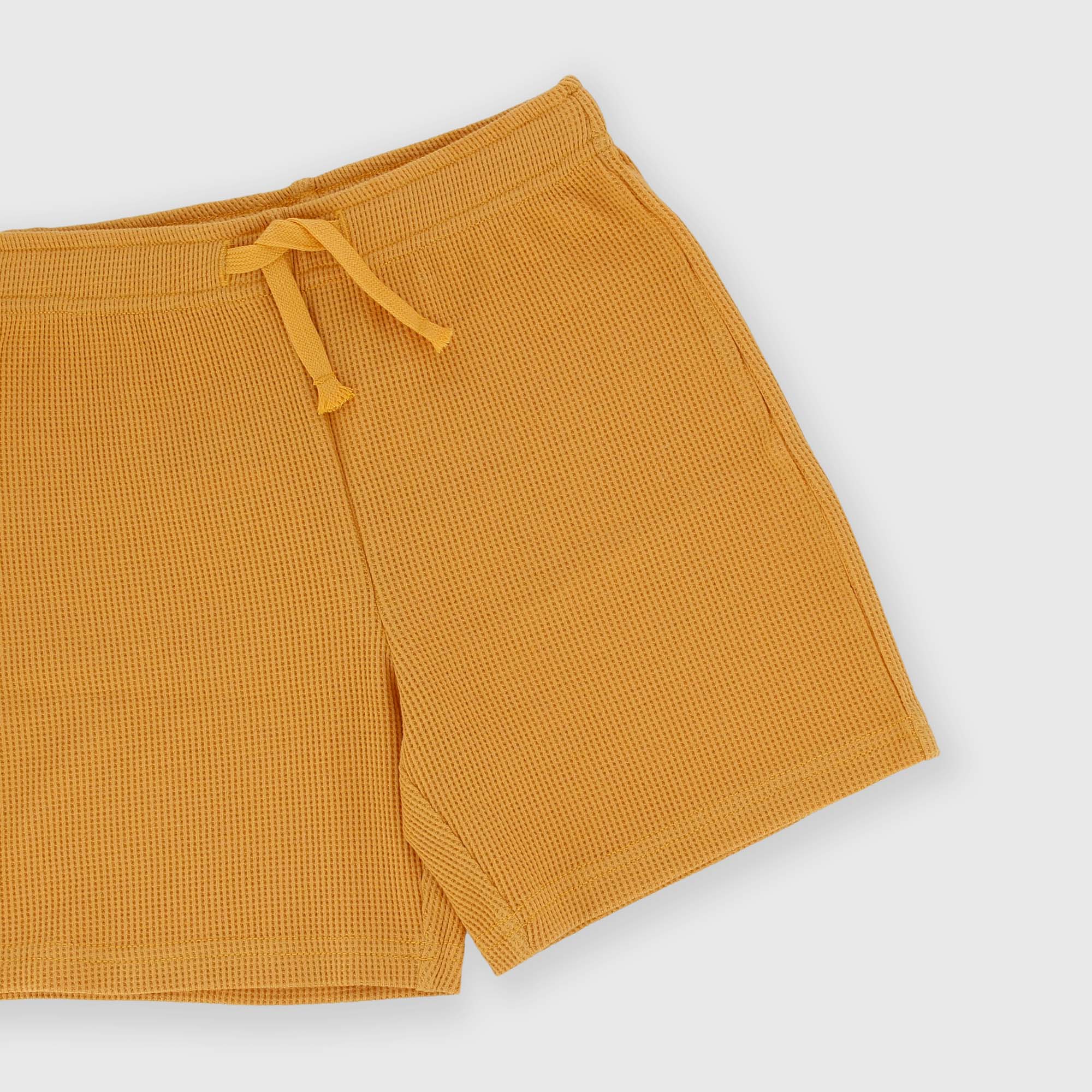 Бермуды с эластичной талией и шнурками спереди. Изготовление с сотовым эффектом.