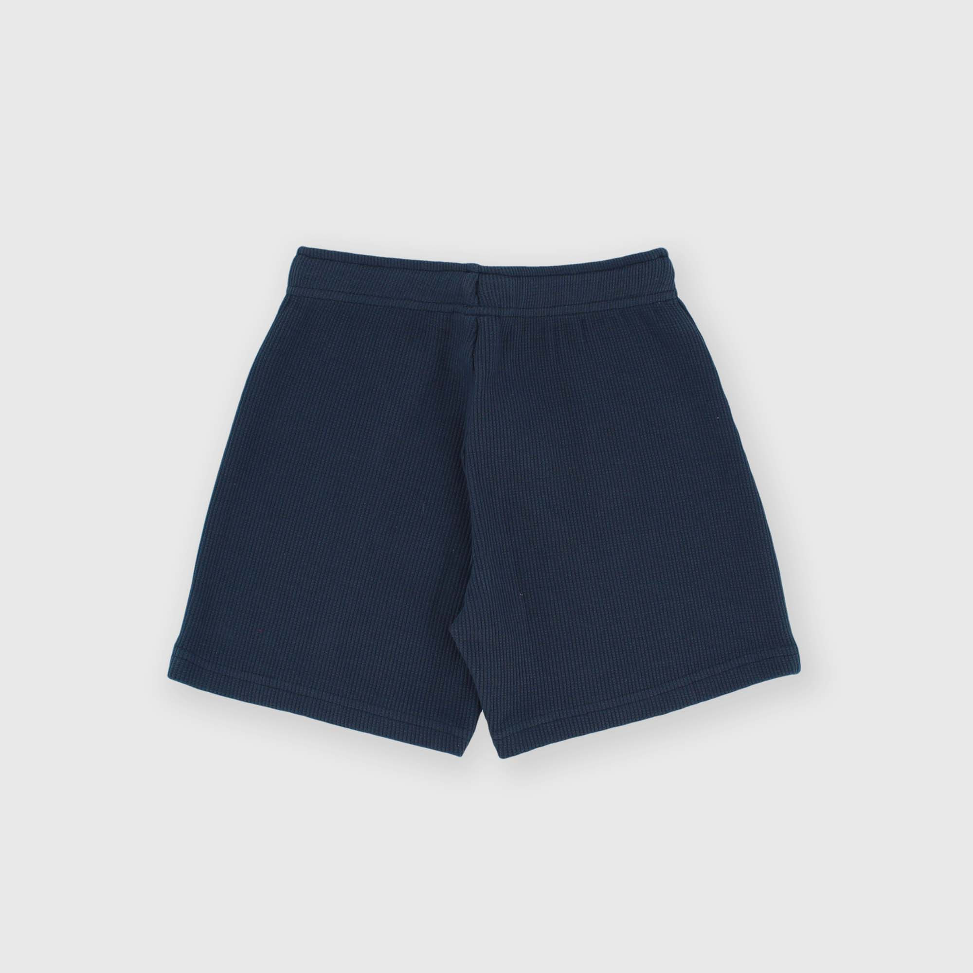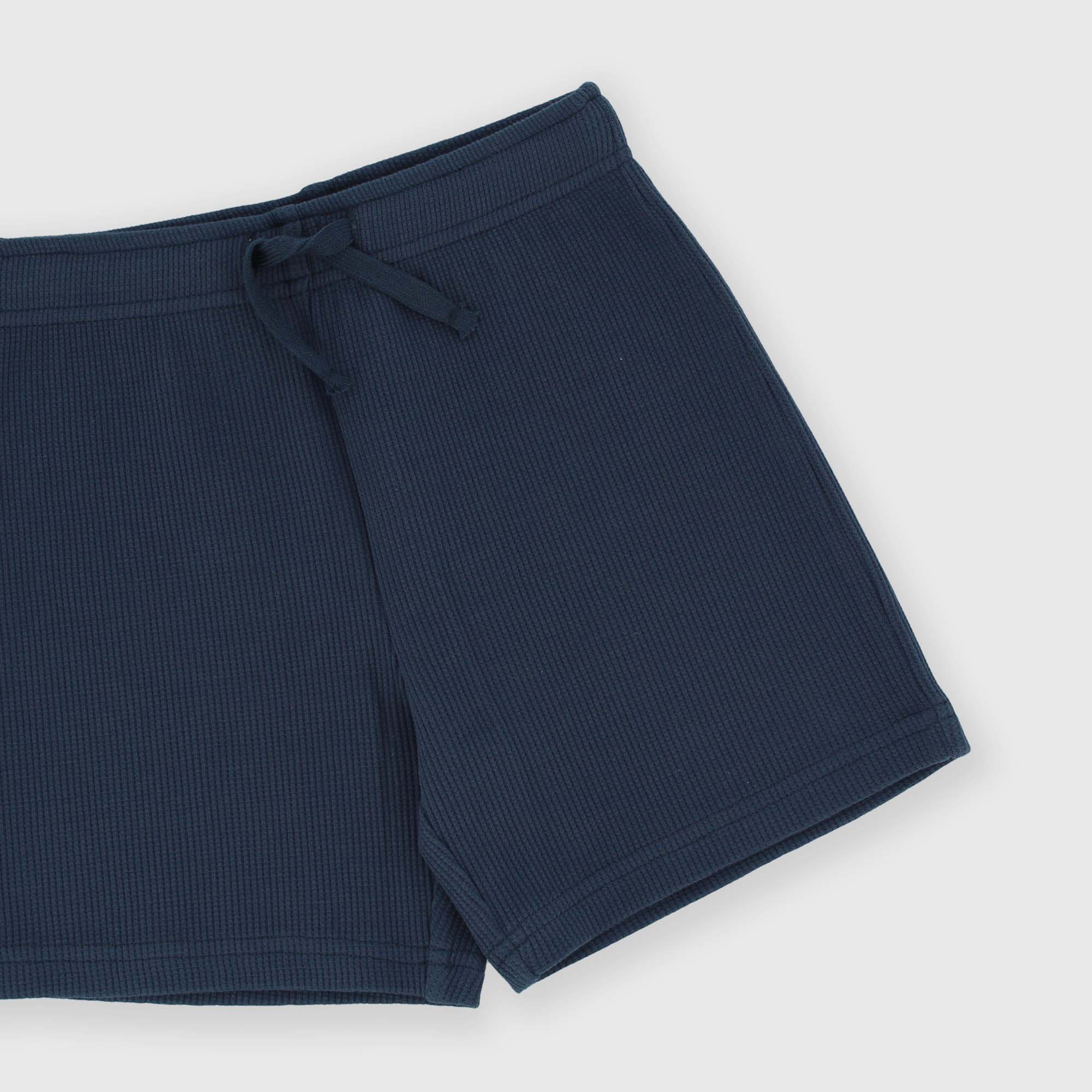Бермуды с эластичной талией и шнурками спереди. Изготовление с сотовым эффектом.