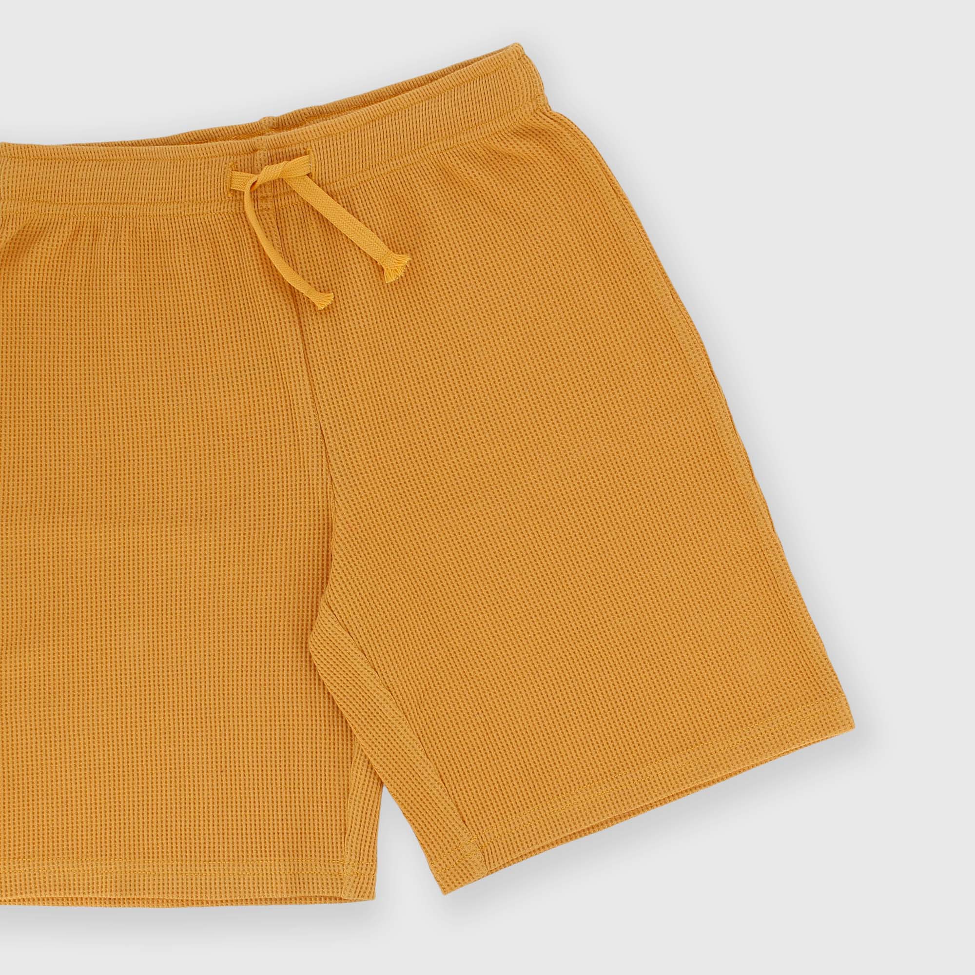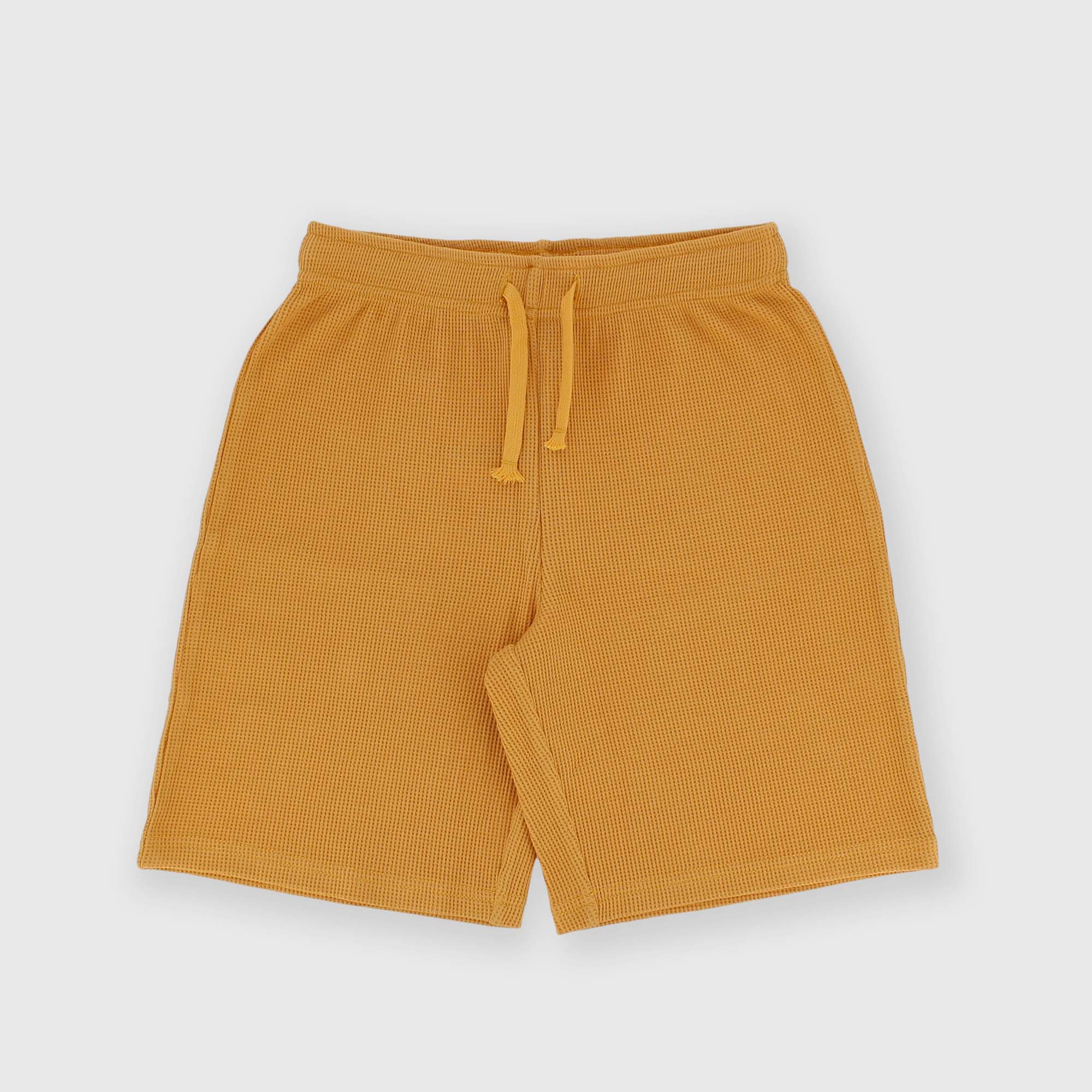 Бермуды с эластичной талией и шнурками спереди. Изготовление с сотовым эффектом.