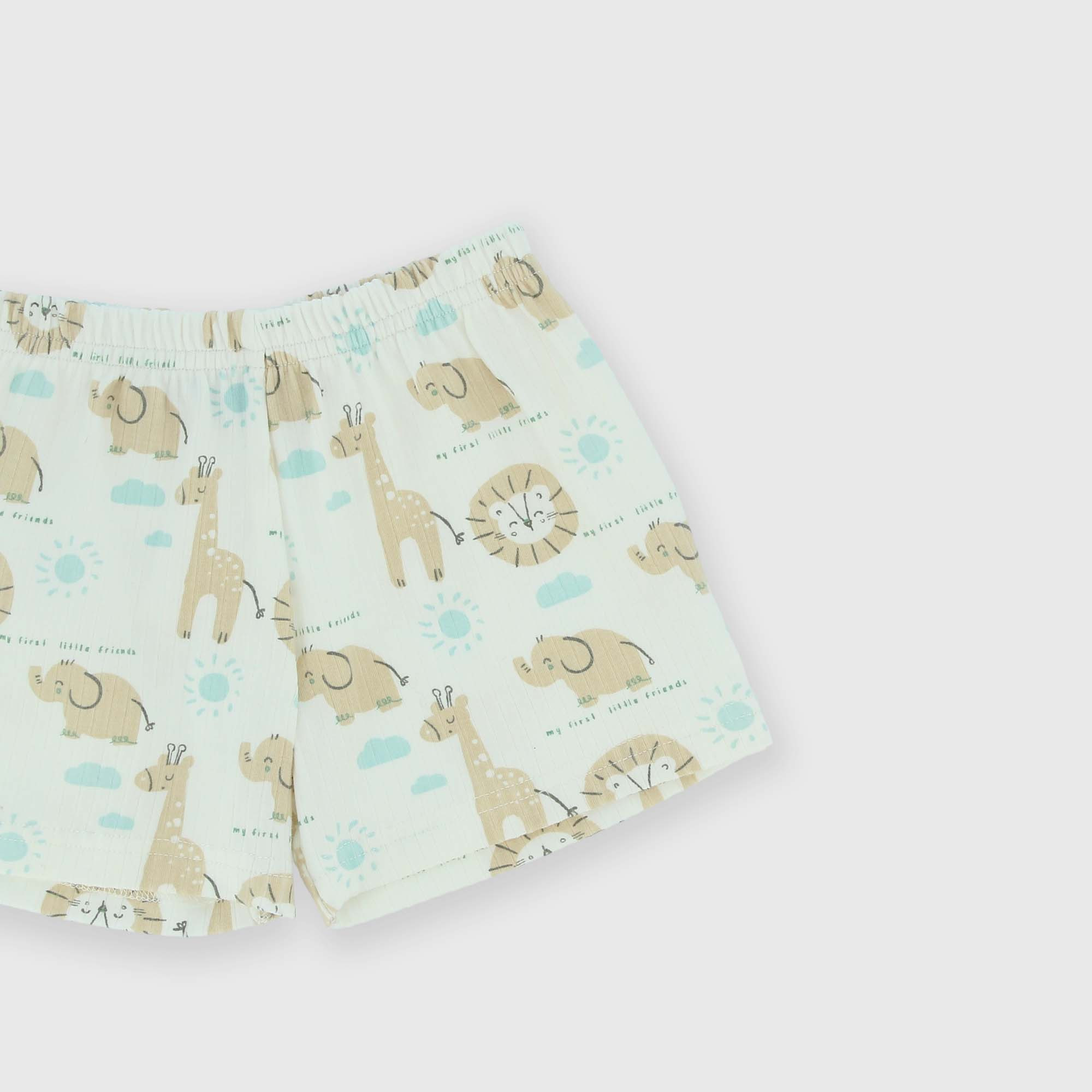 Шорты в рубчик с эластичной талией. Животный принт по всей поверхности.