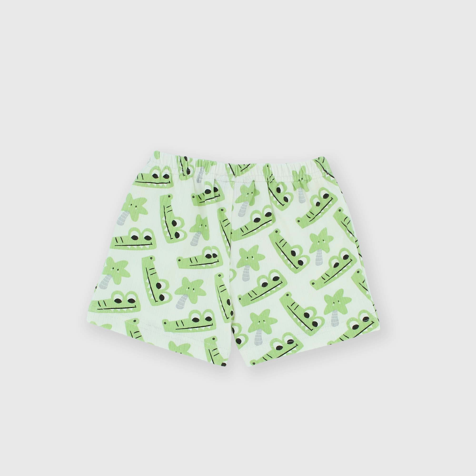 Шорты в рубчик с эластичной талией. Крокодиловый принт по всей поверхности.