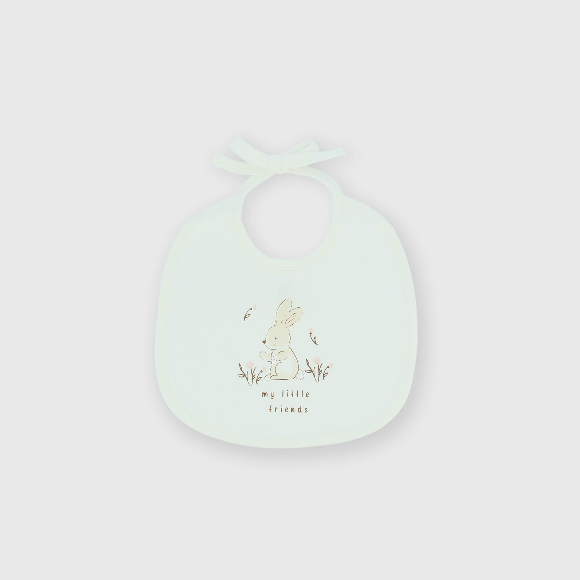 Хлопковый нагрудник с завязкой на шнурке. Принт кролика спереди.