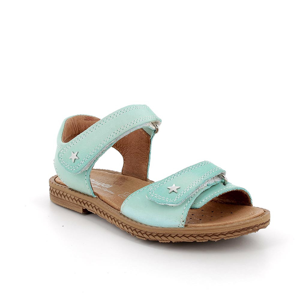 Сандалии для девочек имеют простой и функциональный дизайн, идеально подходят для повседневного использования и обеспечивают комфорт во время летних активностей. Он состоит из двух основных ремешков с застежкой-липучкой, украшенных металлическими заклепками в форме звезд, которые придают изделию особый шарм. Тканый край подошвы с небольшим каблуком напоминает ремесленный стиль. Нога опирается на нежную кожаную стельку.