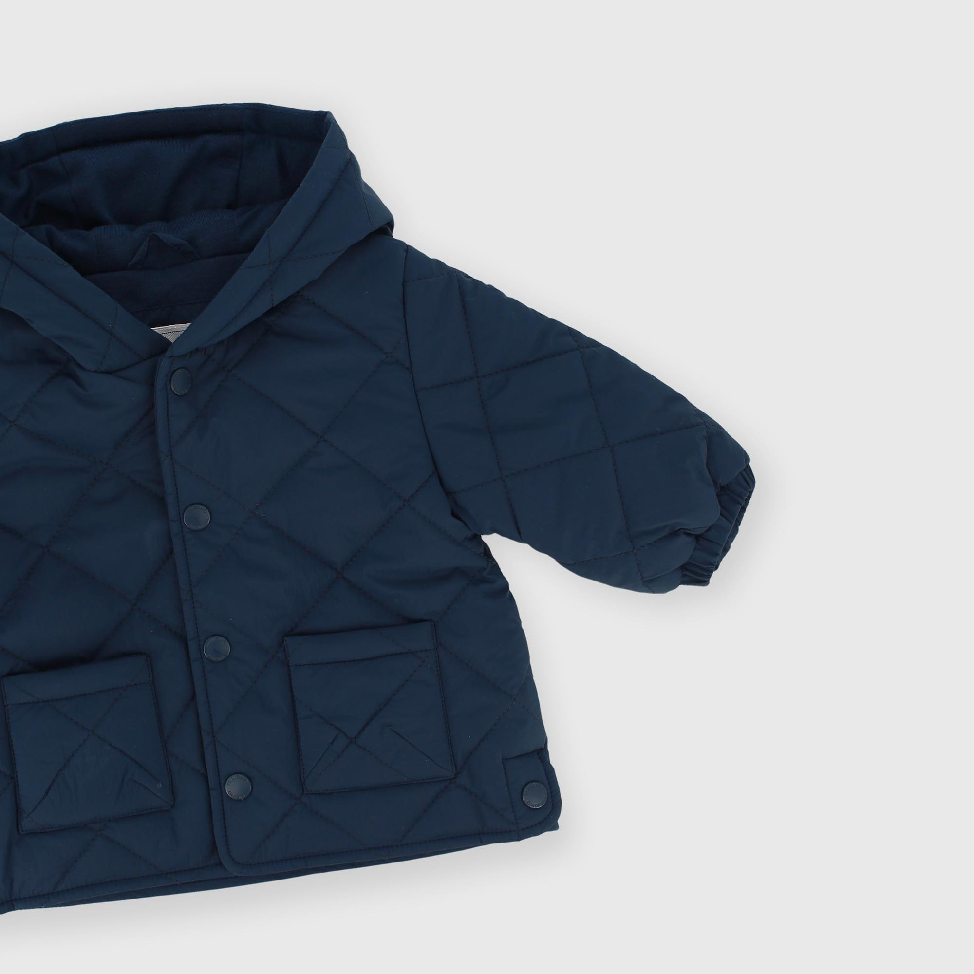 Легкая стеганая нейлоновая куртка с капюшоном и длинными рукавами. Застежка на кнопки спереди. Накладные карманы спереди. Боковые разрезы на пуговицах. Эластичные манжеты. Подкладка из джерси.