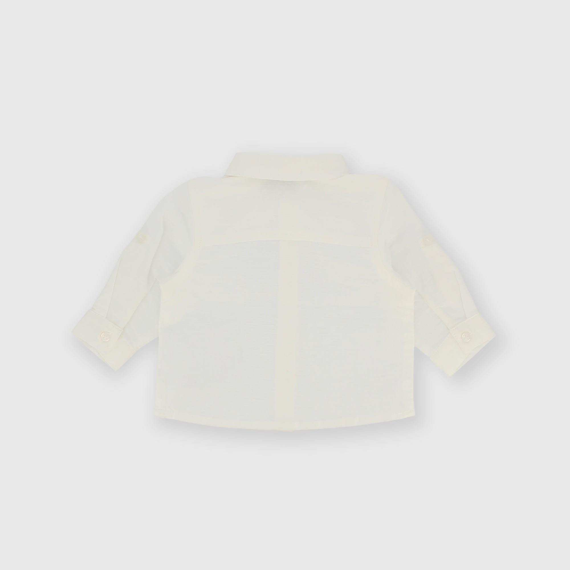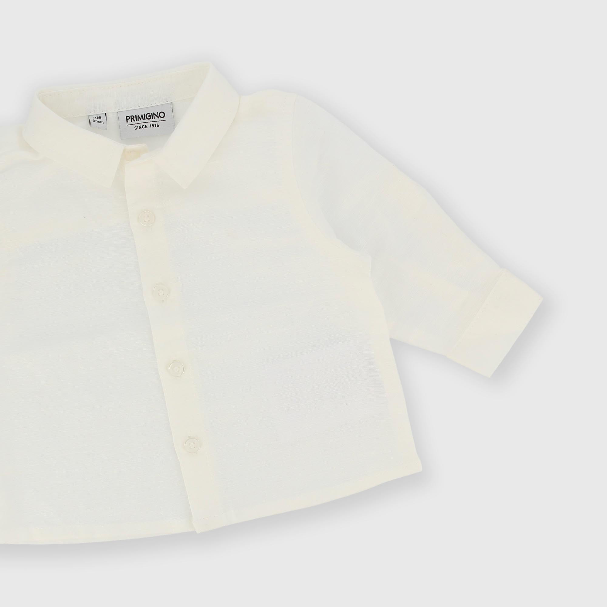 Рубашка из хлопка и льна, с длинными рукавами. Застежка на пуговицы спереди. Регулируемая длина рукава с пуговицей и петлей.