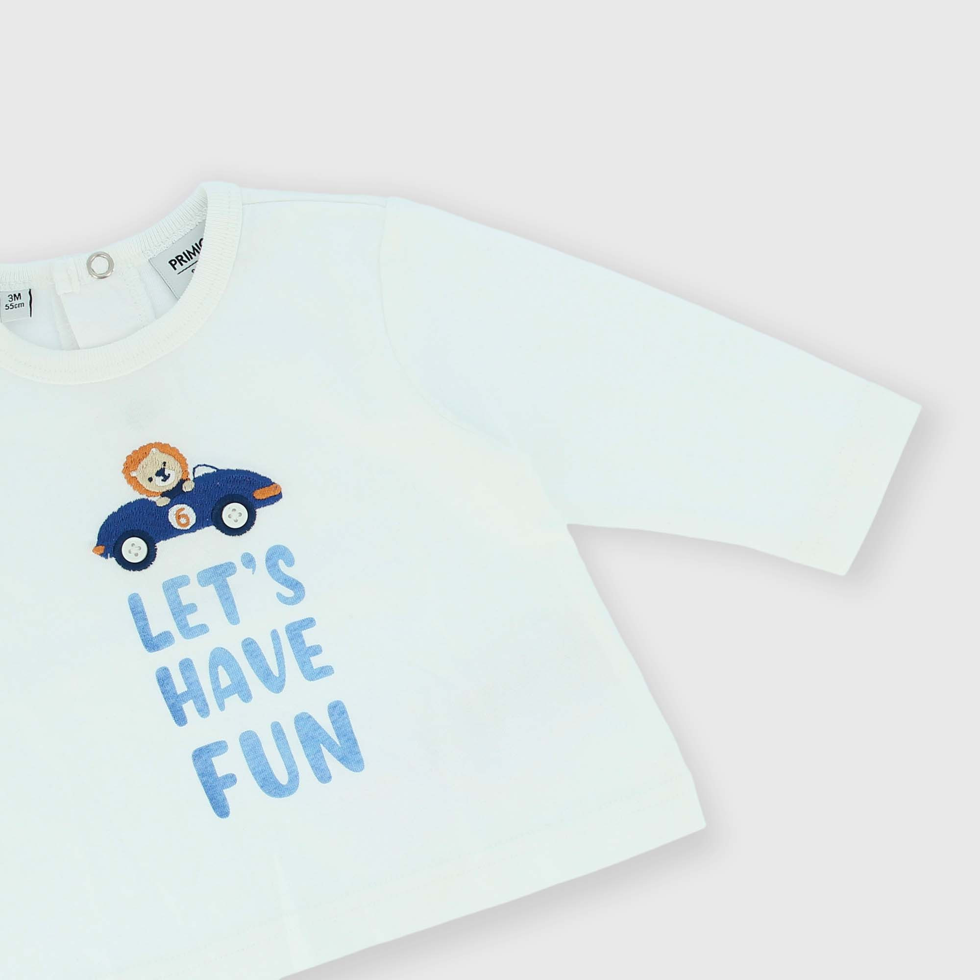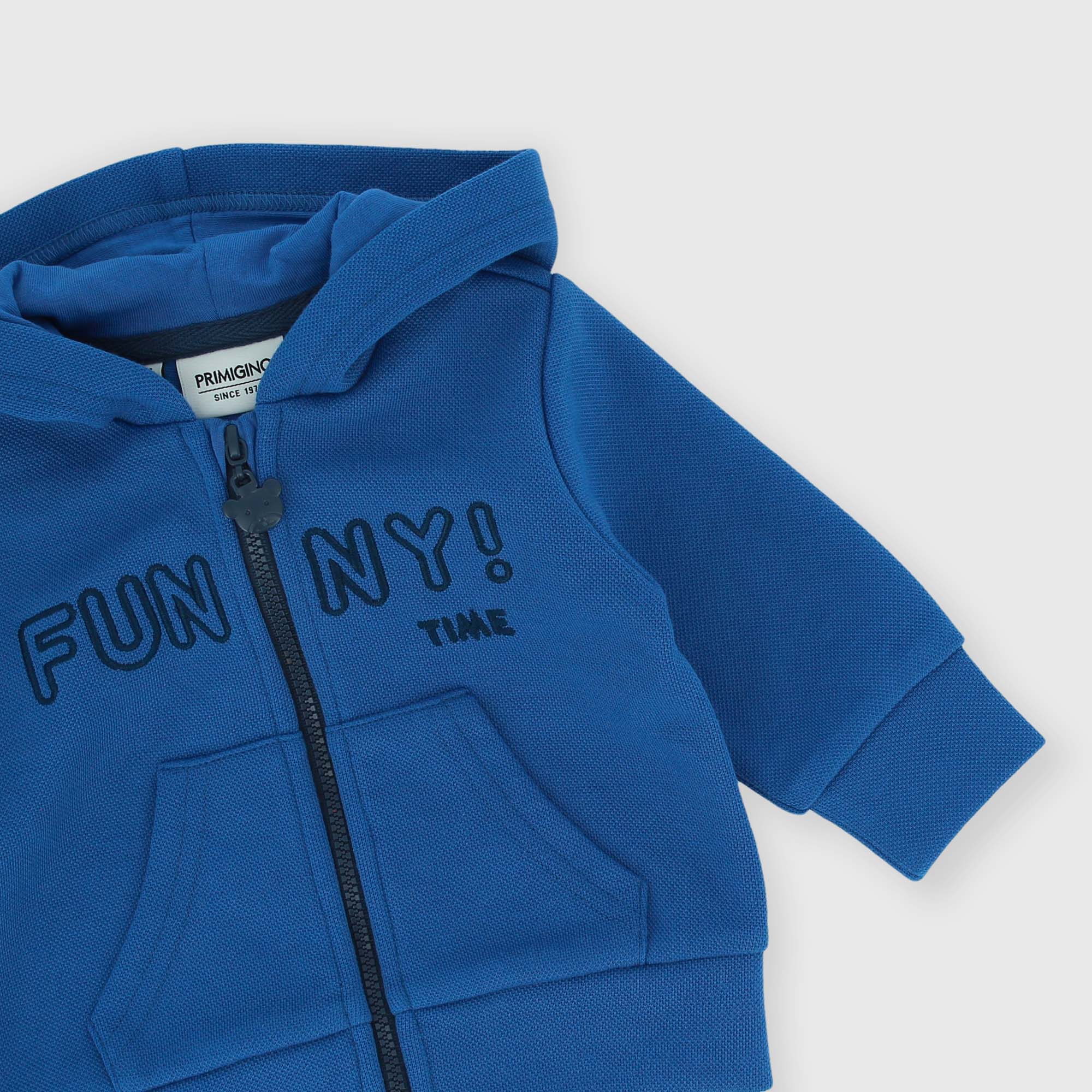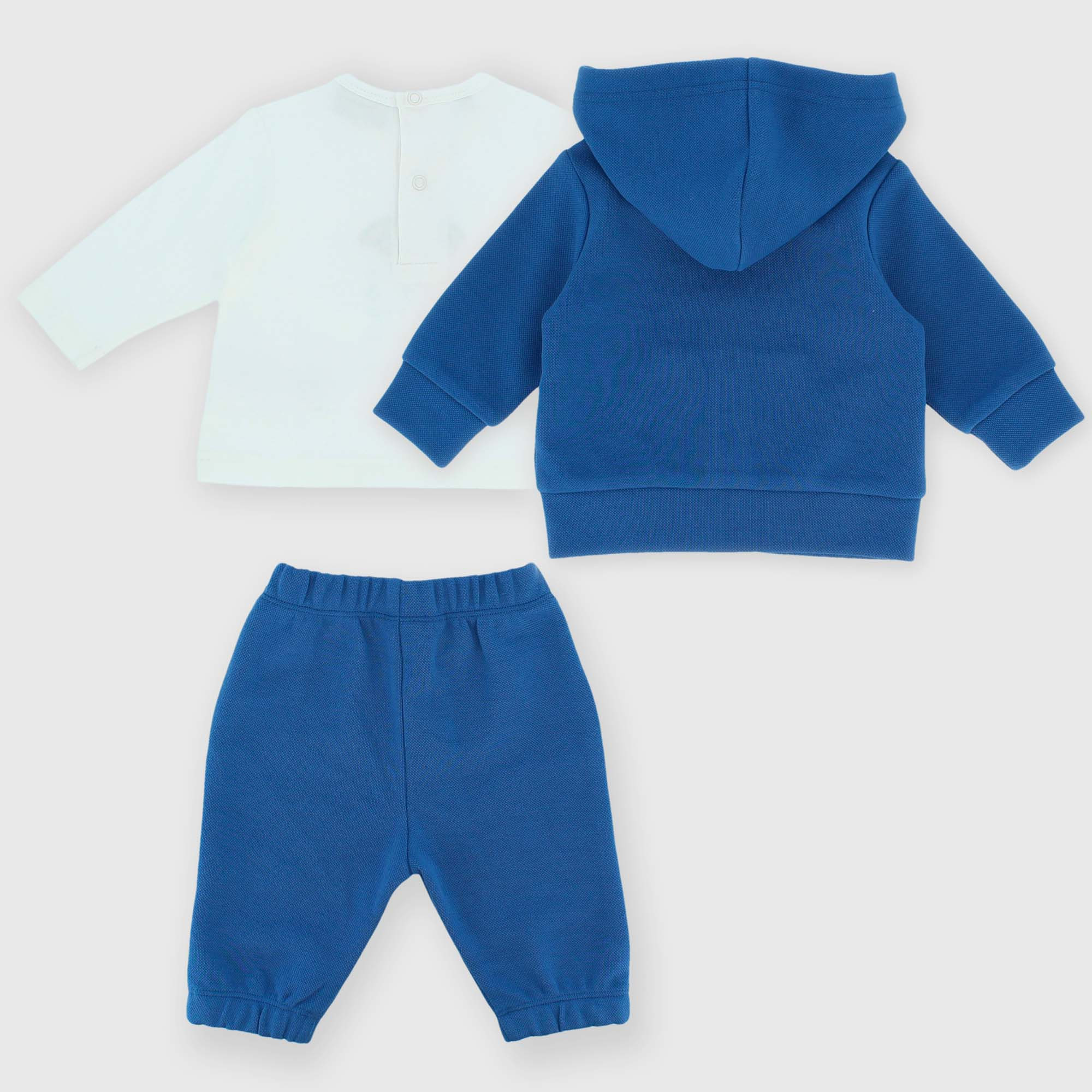 Набор из трёх предметов. Открытая толстовка из пике с длинными рукавами. Застежка-молния спереди. Карман-кенгуру и вышивка спереди. Футболка из джерси с круглым вырезом и длинными рукавами. Застежка сзади на кнопки. Принт и вышивка спереди. Брюки из пике с эластичной талией и шнуровкой спереди. Накладные пуговицы и эластичный низ.