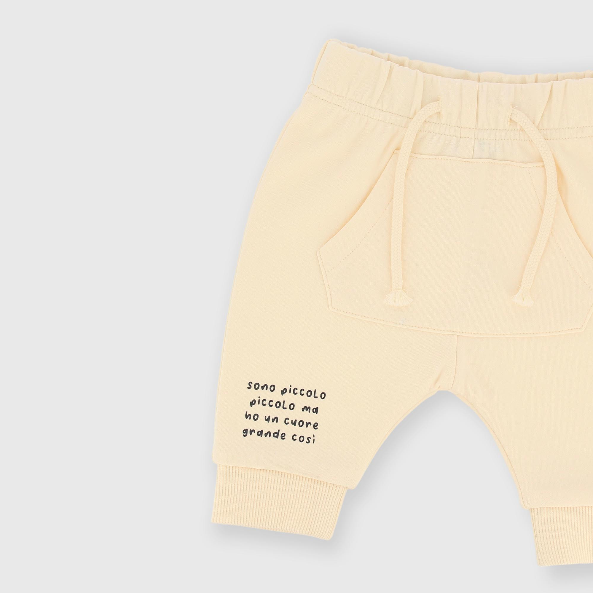 Комплект из двух предметов из плотного джерси. Толстовка с круглым вырезом и длинными рукавами. Застежка на кнопки сзади. Вышитый принт спереди. Ребристая отделка воротника, манжет и нижнего края. Брюки с эластичным поясом и завязками спереди. Карман-кенгуру и небольшой принт на штанине. Ребристая отделка нижнего края.