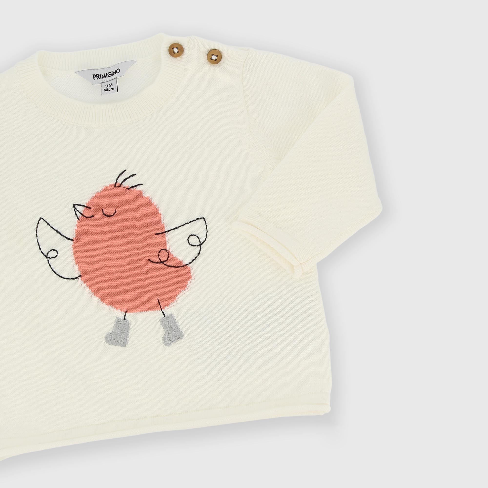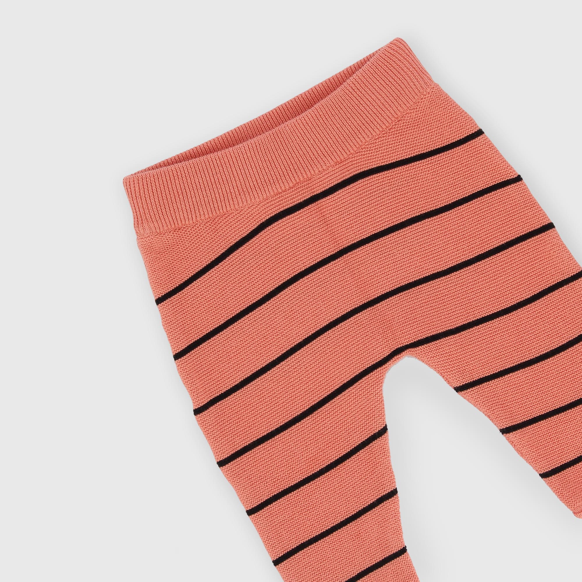 Комплект из двух частей из мягкого хлопкового трикотажа. Джемпер с вышивкой и длинными рукавами. Застёжка на пуговицы на плече. Полосатые брюки с эластичным поясом.