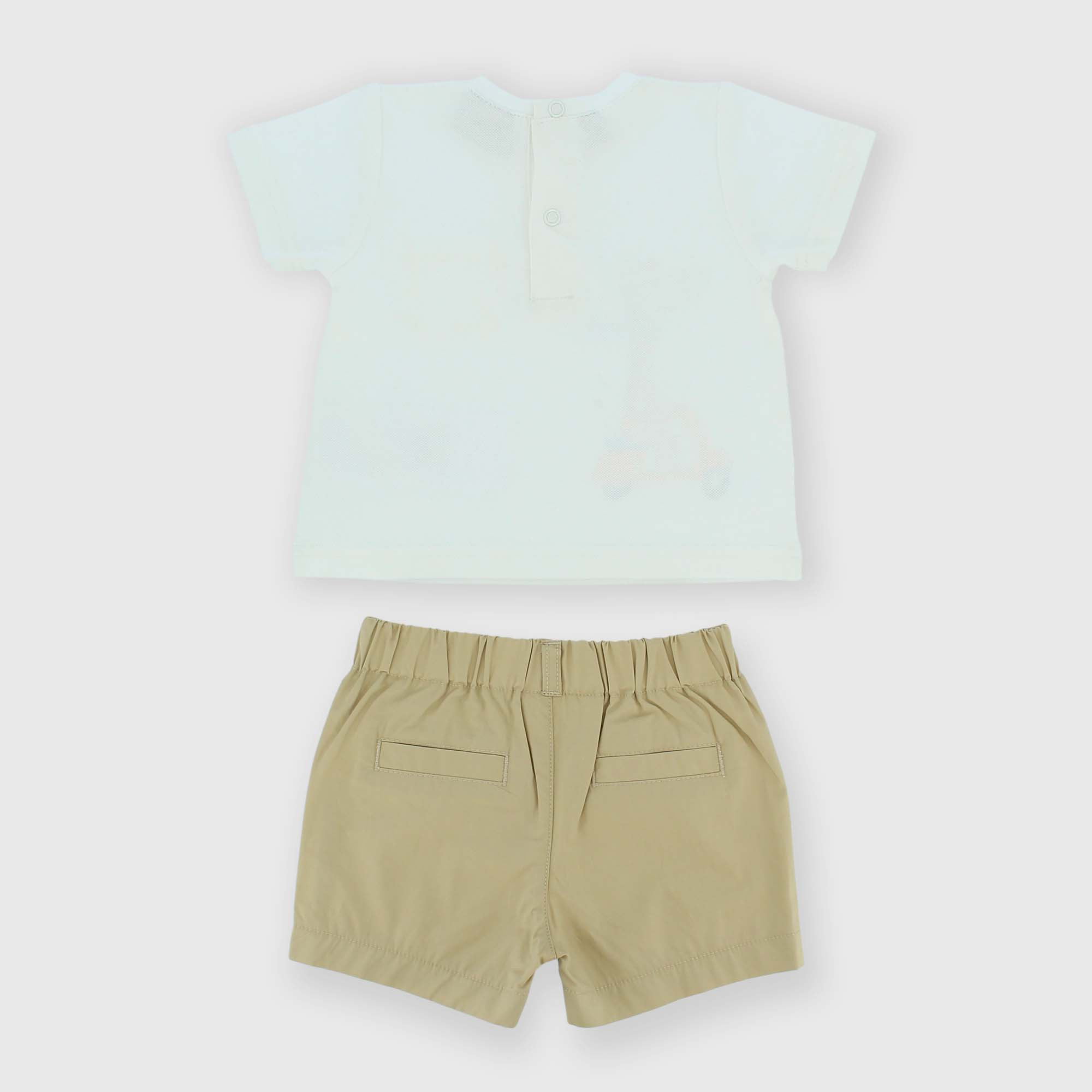 Набор состоящий из двух штук. Футболка из пике с круглым вырезом и короткими рукавами. Застежка сзади на кнопки. Принты на переднем и нагрудном кармане. Шорты с эластичной талией. Французские карманы спереди и прорезные карманы сзади.