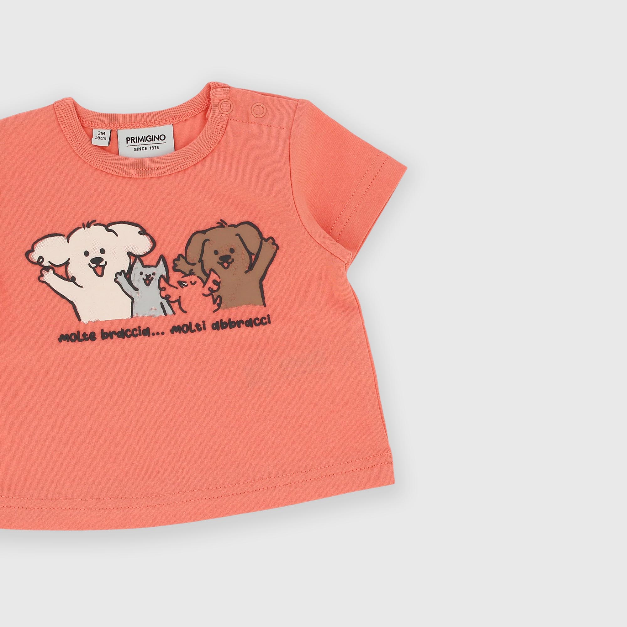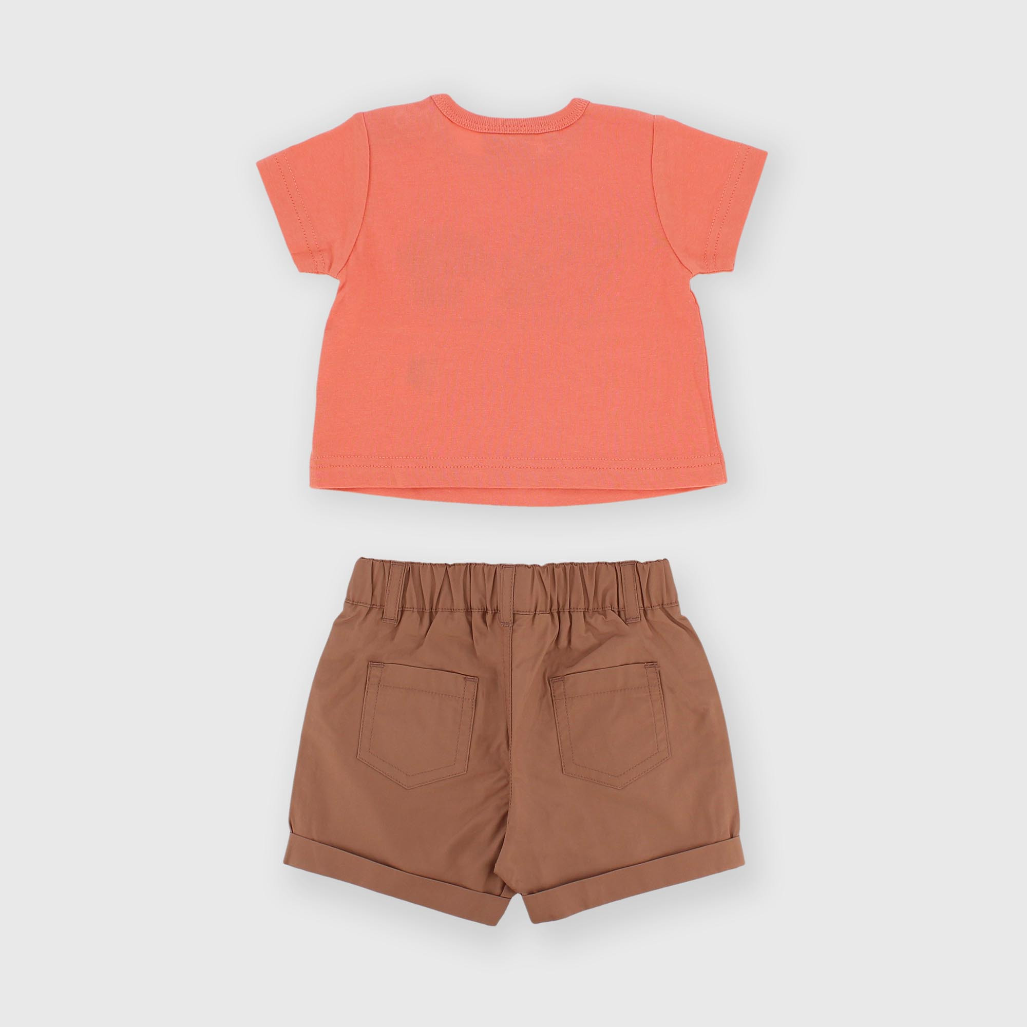 Комплект из двух предметов. Футболка из джерси с круглым вырезом и короткими рукавами. Застёжка на кнопку на плече. Спереди принт с резиновыми деталями. Тканые шорты с эластичным поясом и накладными карманами сзади.