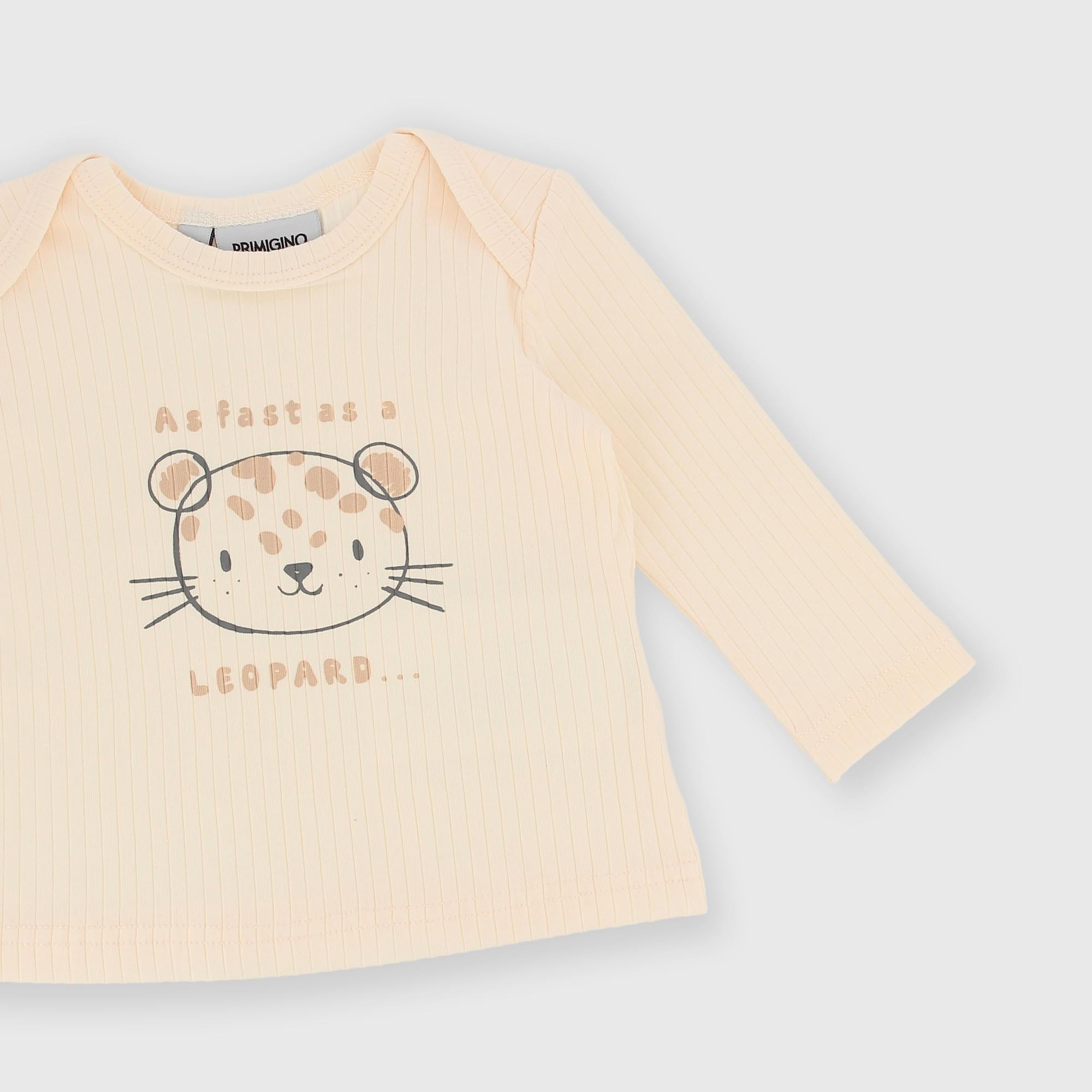 Футболка с круглым вырезом, длинными рукавами и леопардовым принтом спереди.