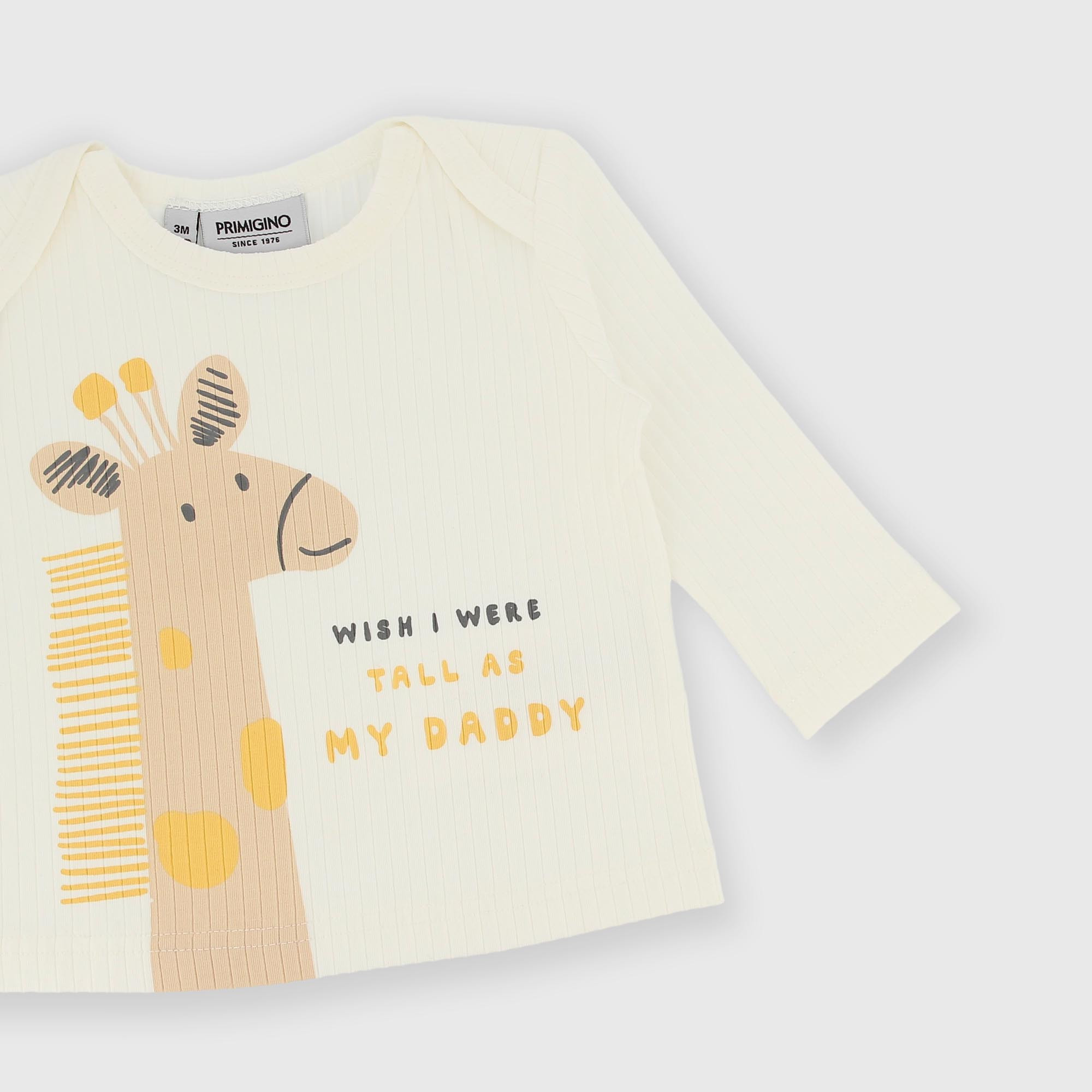 Футболка с круглым вырезом, длинными рукавами и принтом жирафа спереди.
