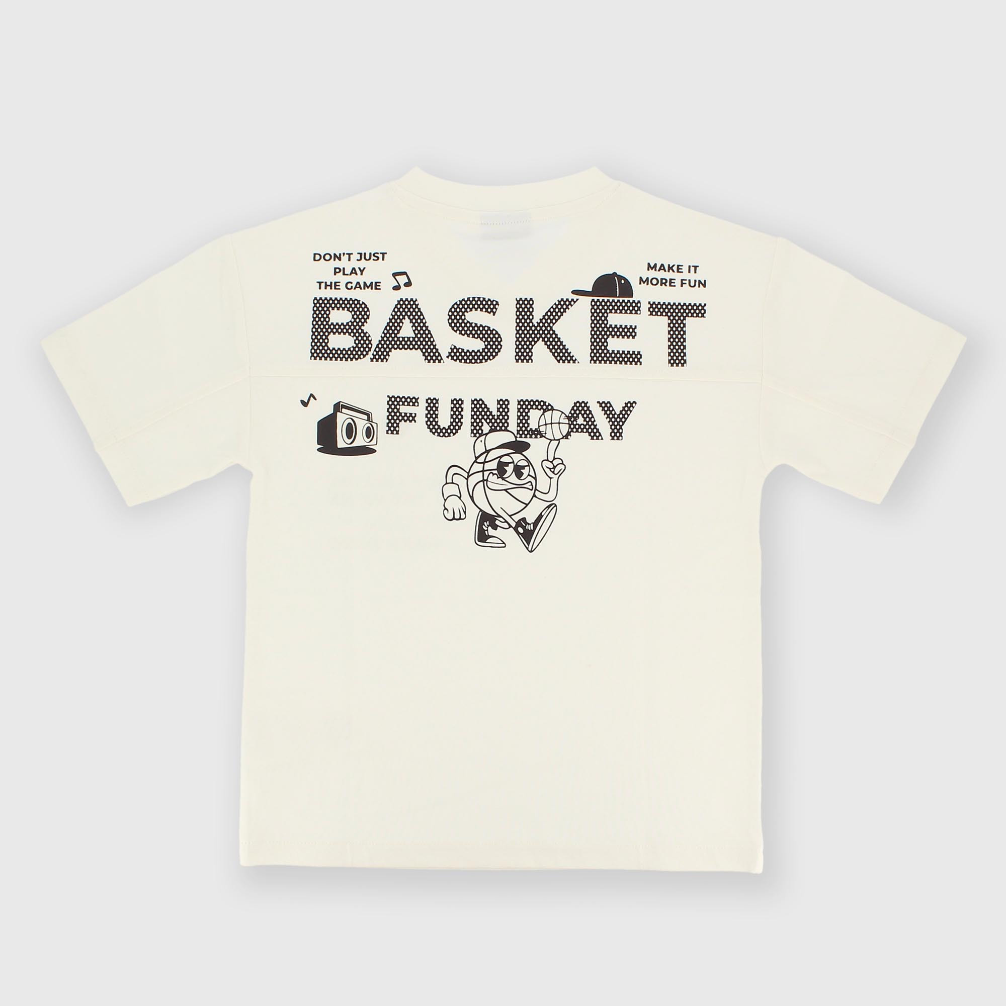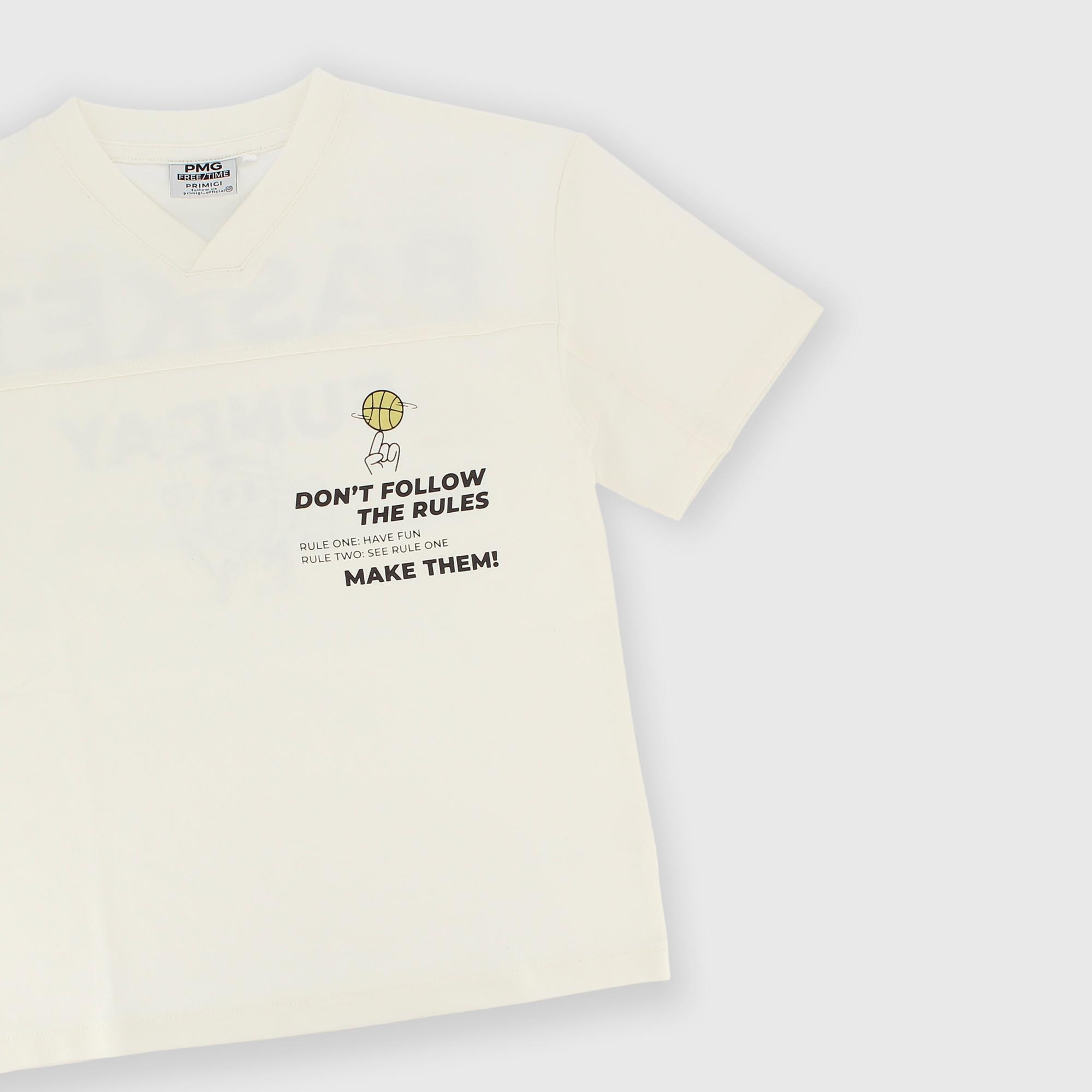 Футболка из джерси, V-образный вырез, короткие рукава. Принты с эффектом резины спереди и сзади.