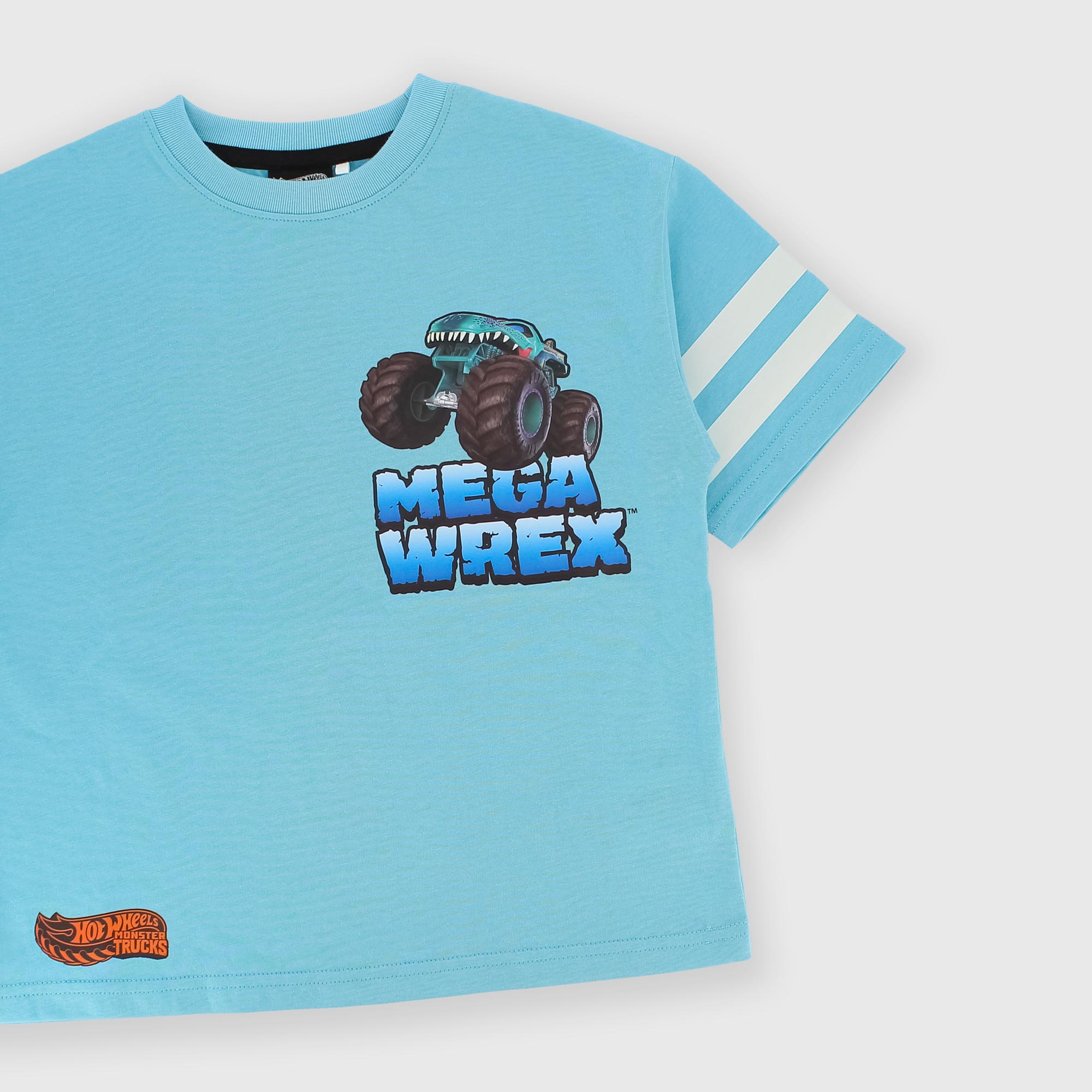 Футболка Hot Wheels™ Monster Trucks, круглый вырез горловины, короткие рукава с контрастными полосками. Принты спереди и сзади. ®2026 Mattel.