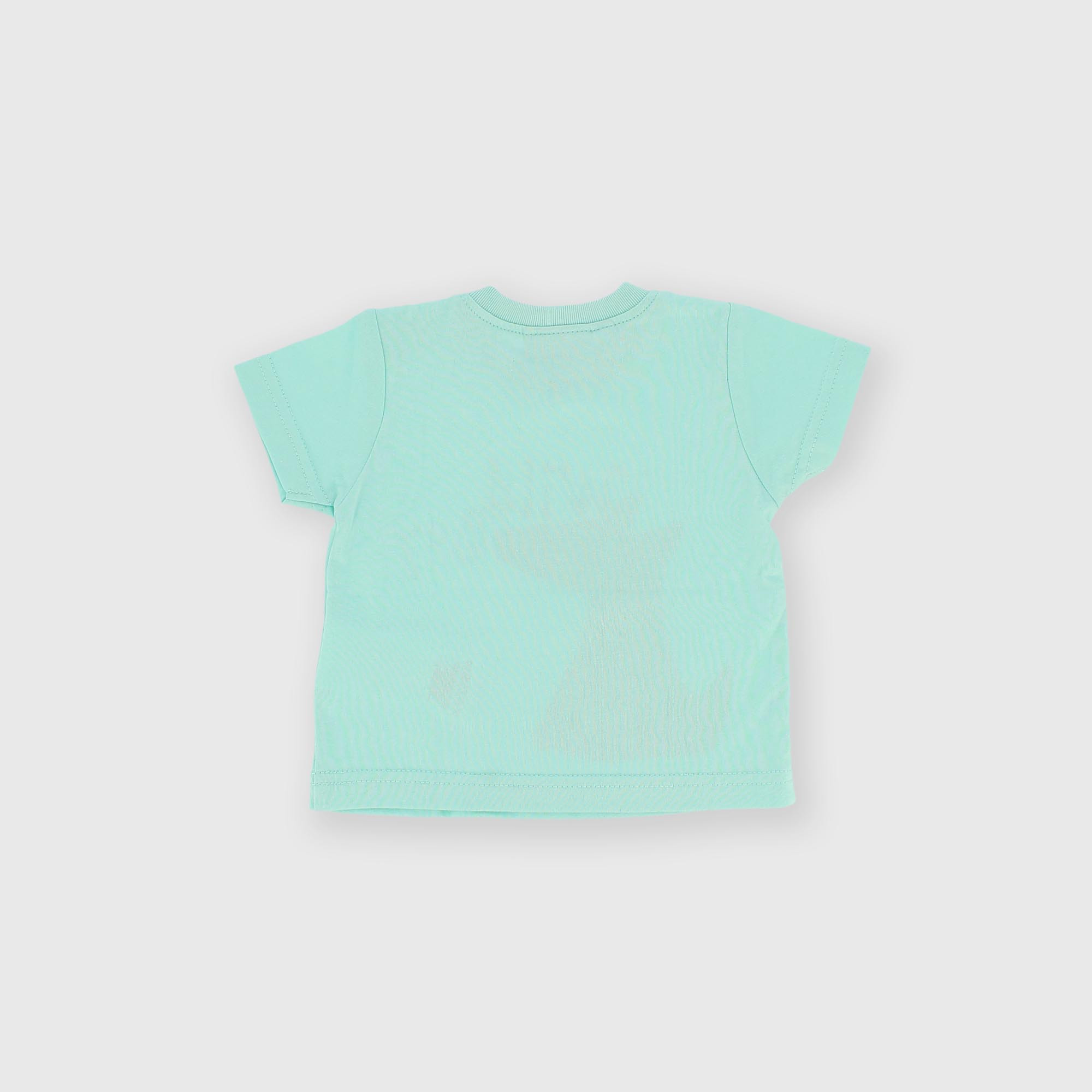 Футболка из джерси, круглый вырез горловины, короткие рукава. Застёжка на кнопку на плече. Принт спереди.