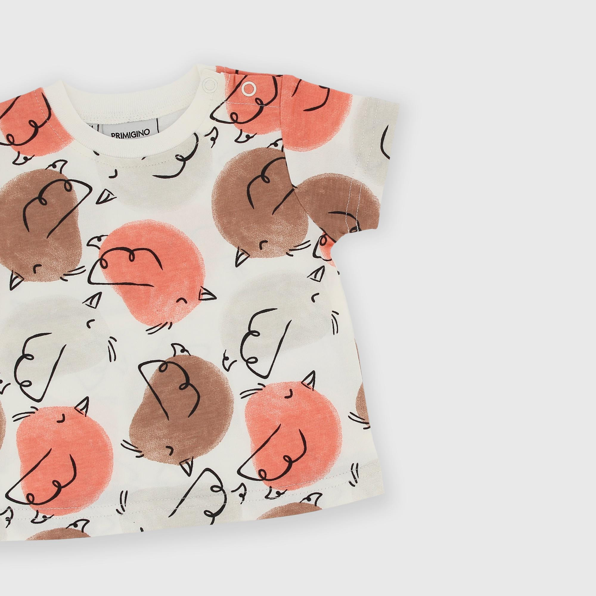 Футболка из джерси, круглый вырез горловины, короткие рукава. Застёжка на кнопку на плече. Принт с изображением птиц по всей поверхности.