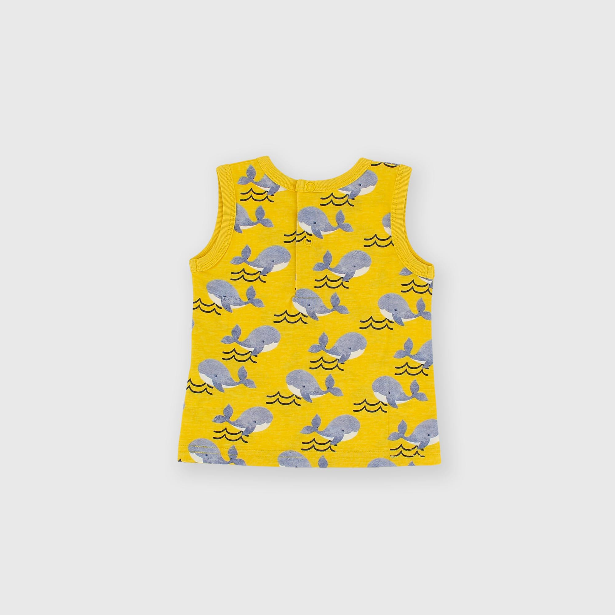 Майка из джерси с круглым вырезом. Застёжка на кнопки сзади. Принт по всей поверхности.