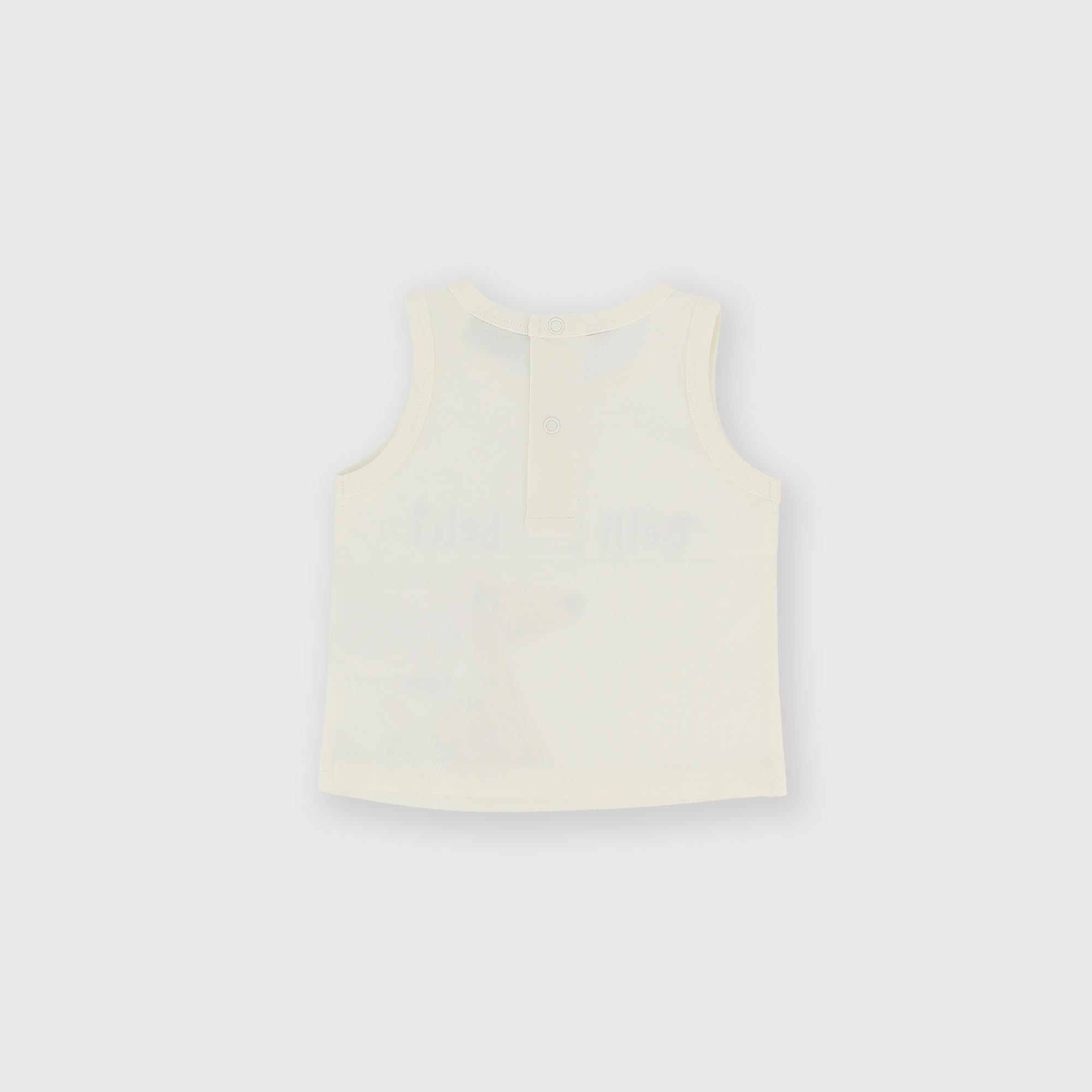 Майка из джерси с круглым вырезом. Застёжка на кнопки сзади. Принт спереди.