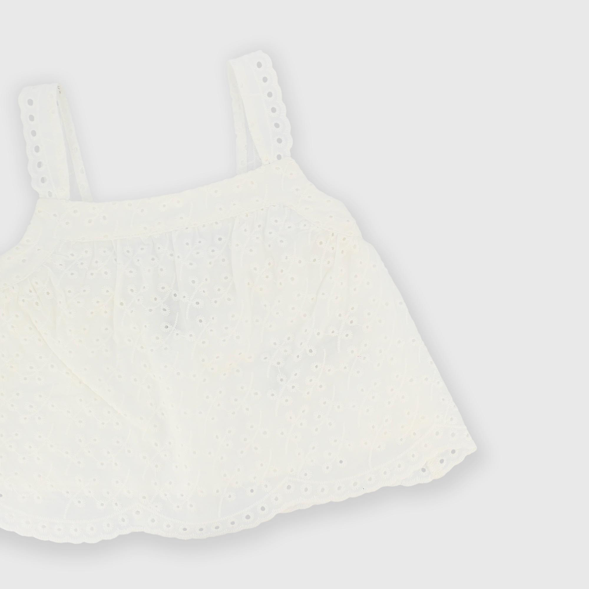 Рубашка с коротким рукавом из кружева сан-галло для девочки белая